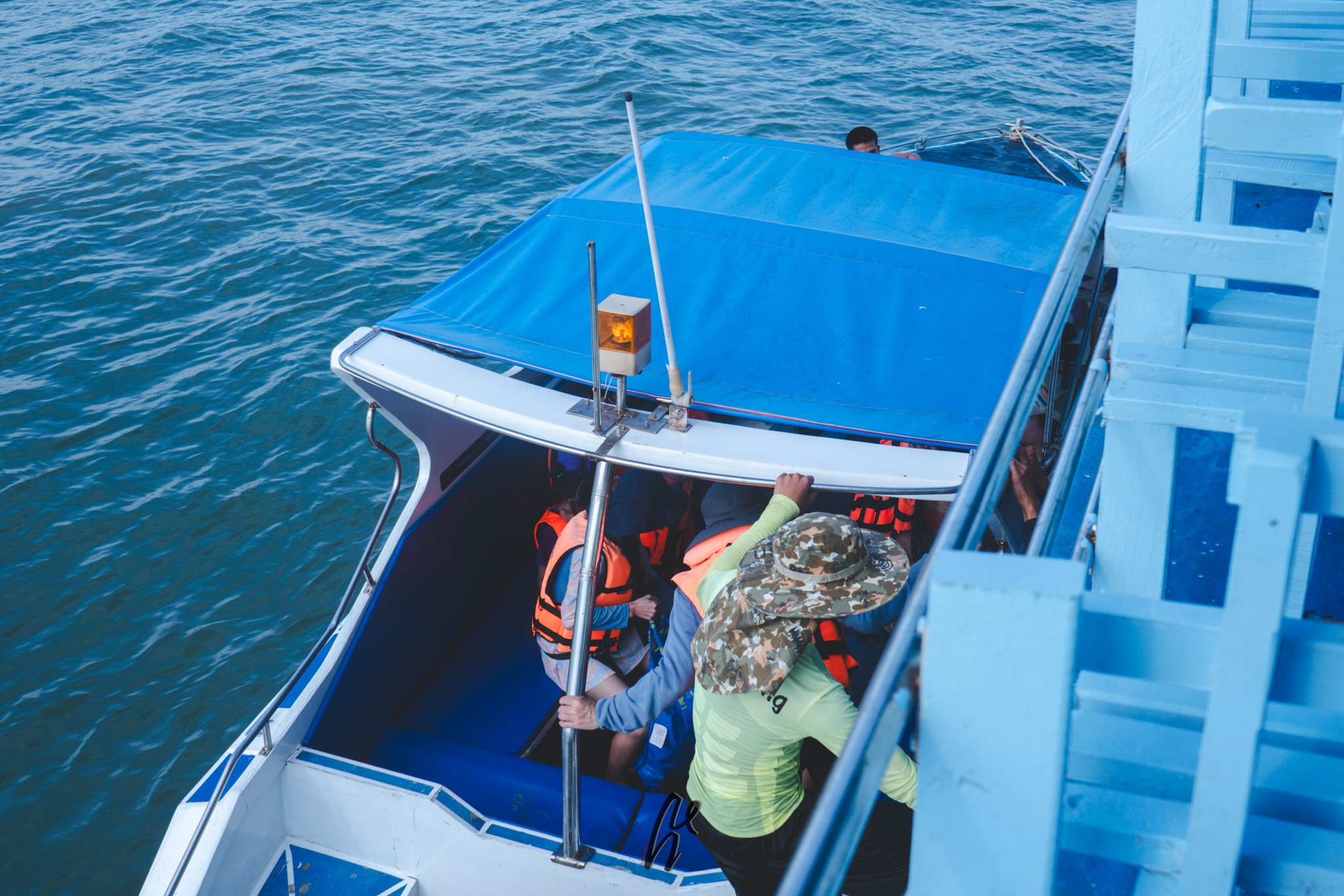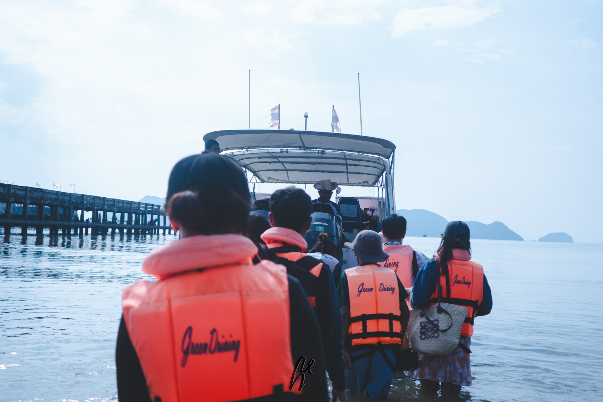 - เราเดินทางไปพักก่อนหนึ่งคืนและตอนเช้าถึงจะออกไปดำน้ำ ซึ่งเราพักที่พักของกรีนเลยราคาไม่แพง มีอาหารเช้า ตื่นมาพร้อมลงเรือเลย บรรยากาศริมหาด มีสะพานท่าเรือ เดินถ่ายรูปเล่นได้ มีหาดที่เงียบสงบ อยู่ในชุมชน เรือประมงให้ถ่ายรูปเล่น และในส่วยของการดำน้ำ จะมีการไปดำ 2 เกาะ เดินทางไปเกาะแรกประมาน 30 - 40 นาที เราไปช่วงวันหยุดแรงงาน นักท่องเที่ยวจะเยอะนิดหน่อย แต่ทีมสตาฟของกรีนก็เยอะเช่นกัน เราไปเรือใหญ่ แต่จะต้องนั่งสปีดโบ๊ทออกไปขึ้นอีกทีนะ พอถึงเกาะแรก คือเกาะร้านเป็น เป็นเกาะหินไม่ใหญ่มาก แต่ใต้น้ำปลาเยอะมาก และปะการังสวยมาก ดูสมบูรณ์สุดๆ ดำน้ำสนุกเลย ตื่นเต้น ตื่นตาทุกจุด ดำจนเหนื่อยเลย มีทีมสตาฟดูแลตลอด มีบริการถ่ายภาพใต้น้ำฟรี ได้ถ่ายทุกคนแน่นอน แต่ที่เราหวังคือน้องฉลามวาฬ อยู่ไหน หรือจะอยู่เกาะสอง เกาะแรกเราเลยได้แค่ดูปลาเล็กกับปะการังสวยๆ แต่แค่นิก็คือประทับใจแล้ว รู้สึกคุ้มกับราคาแล้ว เหลือแค่เจอกับน้องฉลามวาฬเท่านั้น ไปต่อที่เกาะสอง เกาะร้านไก่ ก็นี่ปาการังจะสู้เกาะแรกไม่ได้ แต่มีมุมสำหรับถ่ายภาพที่จะรูด้านบนของเกาะ ที่จะมีแสงรอดลงมายังน้ำที่ถ่ายรูปออกมาได้สวยเลย และทีมสตาฟก็พาถ่าย และถึงเวลาที่เราจะตามหาน้องฉลามวาฬ มีน้องสตาฟจะพาเราหาน้องฉลามโดยการพาว่ายรอบเกาะ ใช่เลย รอบเกาะ น้องสตาฟเก่งมาพาเรากับแฟนว่ายรอบเกาะตามหาน้องฉลามวาฬ แต่ก็ยังไม่เจอ ไม่เป็นไรรอบนี้ถือว่าคุ้มแล้ว ดำน้ำดูปะการังสวยๆ ทะเลใสๆ ทีมสตาฟดูแลดี แค่นี้ก็เต็มอิ่มแล้วในรอบนี้