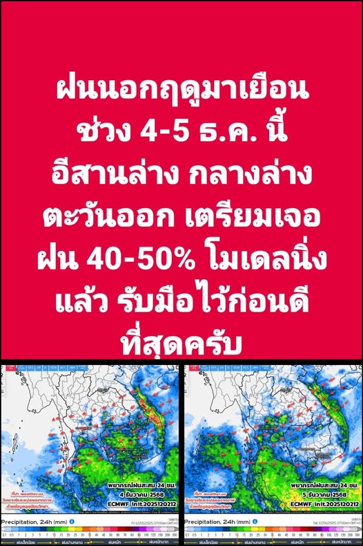 เตือนฝนหลงฤดู ช่วงวันที่ 4-6 ธ.ค.