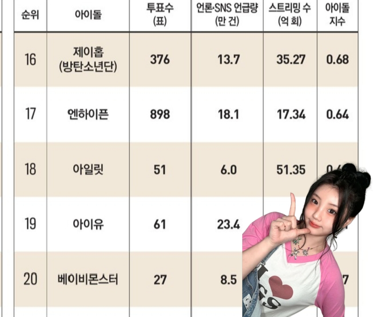 ถ้านับรวมวง KPOP ทั้งหมด ILLIT จะอยู่อันดับ 7 ดป็นรองแค่วงรุ่นพี่เท่านั้น