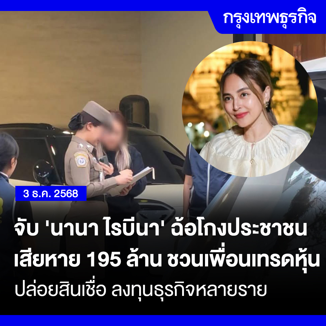 จับ ‘นานา ไรบีนา’ ฉ้อโกงประชาชน เสียหาย 195 ล้าน ชวนเพื่อนเทรดหุ้น ปล่อยสินเชื่อ ลงทุนธุรกิจหลายราย