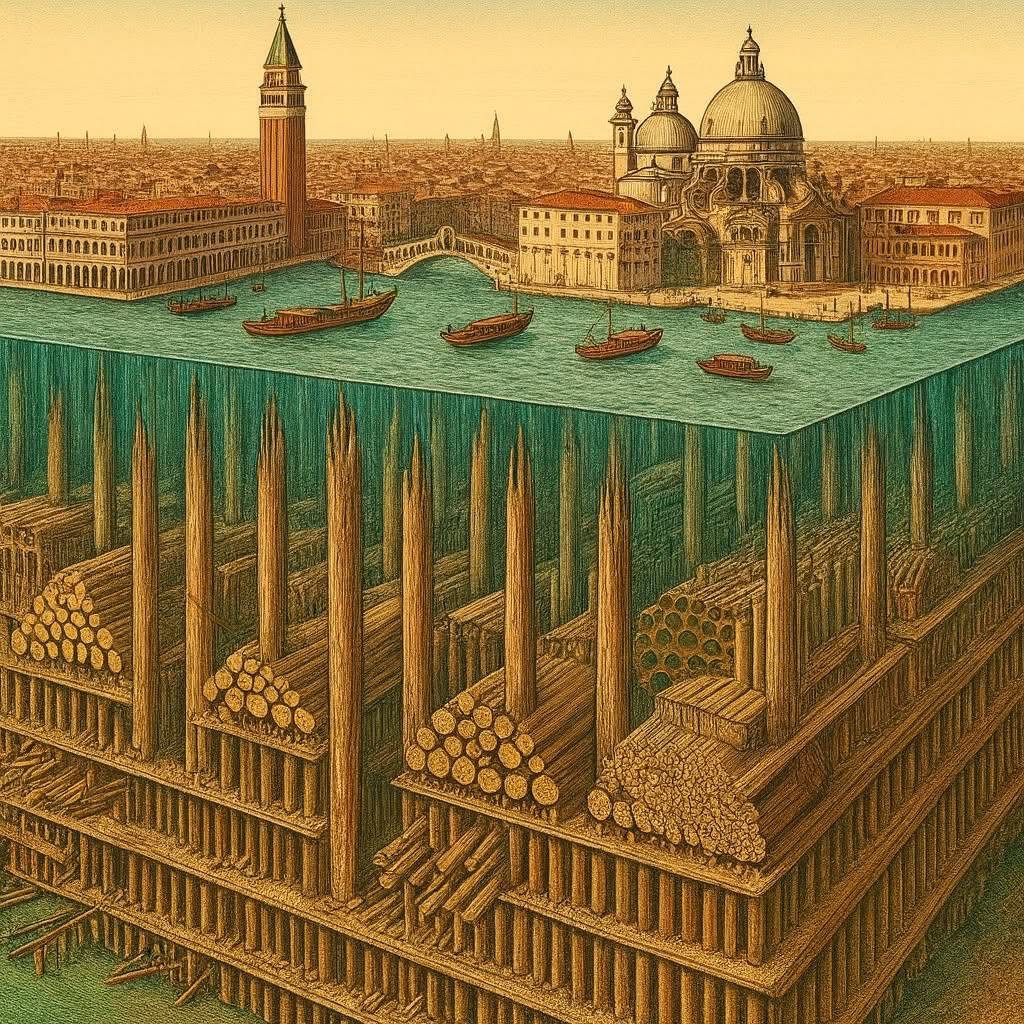 โครงสร้างฐานรากที่ทำจากไม้โบราณนี้จึงเป็นหัวใจสำคัญที่ช่วยรักษาเมืองเวนิสให้รอดพ้นจากการจมทะเลมาจนถึงปัจจุบัน และเป็นข้อพิสูจน์ถึงภูมิปัญญาทางวิศวกรรมของชาวเวนิสโบราณที่น่าทึ่งครับ