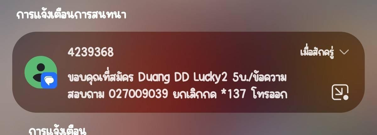 เมื่อวานตอนตี 1 กำลังเล่นเกมอยู่ มีข้อความเด้งเข้ามาว่าเราไปสมัคร SMS ดูดวง ข้อความละ 5 บาทไว้ ด้วยความที่อยู่หน้าจอพอดี ก็เลยกด *137 โทรออกไปยกเลิกทันทีเลย มีข้อความจากระบบมายืนยันการยกเลิกด้วย พอ