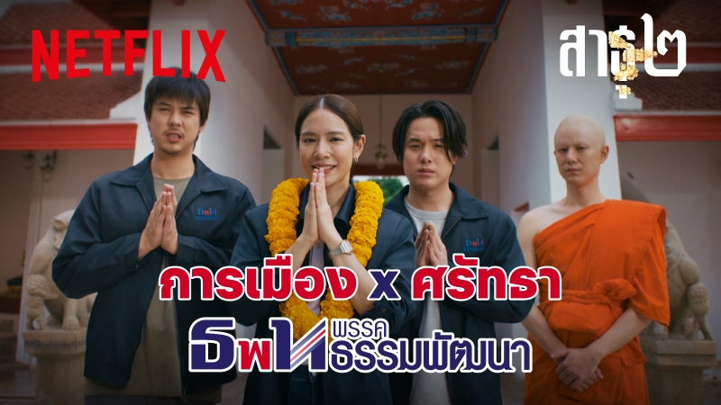 สร้างปรากฏการณ์สะเทือนโลกโซเชียลอีกครั้ง เมื่อ Netflix เปิดตัวแคมเปญ “พุทธ Politics” ที่เรียกเสียงฮือฮาไปทั้งประเทศ เพื่อปูพรมต้อนรับกับซีรีส์สะท้านศรัทธา สาธุ ๒ โดยเริ่มจากการปล่อยคลิปเสียงหลุดสุดฉาวของ สจ. เอ๋ ชไมพร ต่อเนื่องด้วยซีรีส์คลิปวิดีโอตามหาแคนดิเดตทีมฟอกบุญ ที่ได้ HR อินฟลูเอนเซอร์ชื่อดังอย่าง มอส-มัดจุก มาร่วมคัดเลือกผู้สมัครหัวกะทิร่วมกับนักแสดงหลัก ก่อนขยี้ต่อด้วยการเปิดตัวพรรคธรรมพัฒนา พรรคการเมืองใหม่อย่างเต็มรูปแบบ และปิดท้ายแคมเปญด้วยการจัดอีเวนต์ใหญ่ “สาธุแฟร์” เพื่อนำประสบการณ์เต็มรูปแบบจาก สาธุ ๒ ออกมาให้แฟนๆ ซีรีส์ได้ร่วมเป็นส่วนหนึ่งของจักรวาลสาธุ