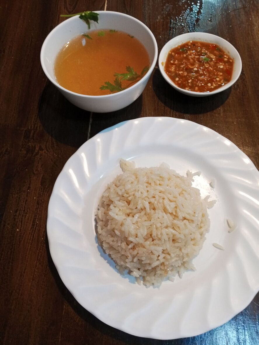ข้าว น้ำซุป และ น้ำจิ้ม มาวางก่อน