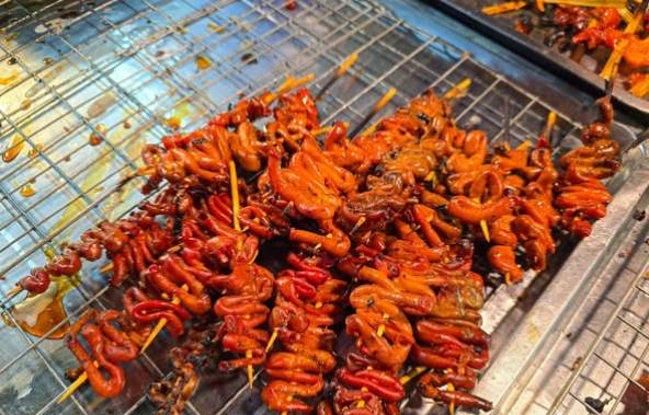 ไก่ย่างน้อย ไส้ไก่ย่างไม้ละ 3 บาท 7 ไม้ 20 ร้านอยู่แถวตลาดโพศรี อุดรธานี ร้านนี้ยอมใจคนมัดไก่ค่ะ