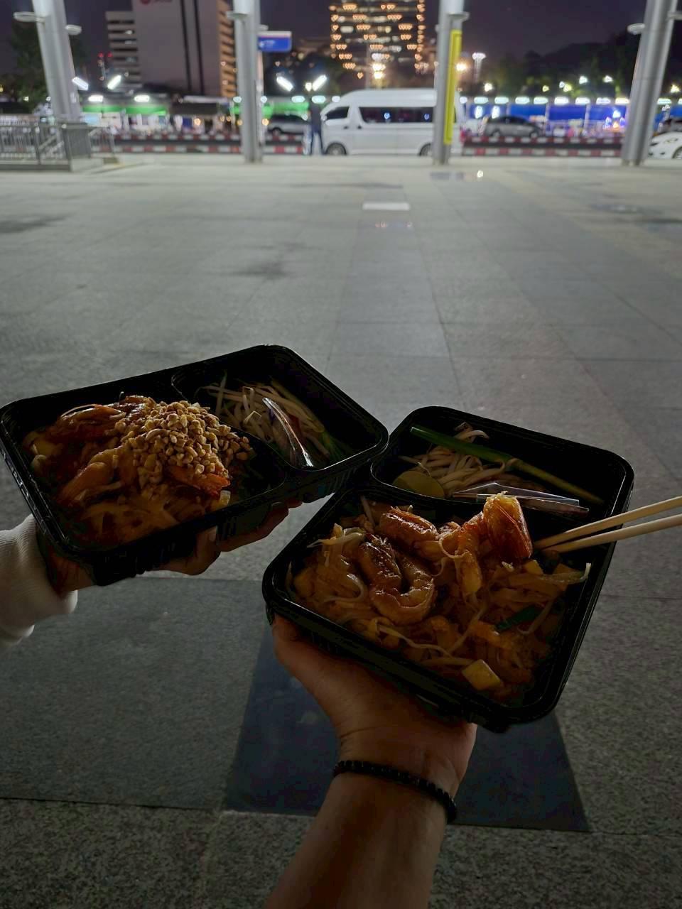20.00 น. ตรงเวลาเป้ง ทุกคนมารวมตัวกัน พวกเรานั่งกินผัดไทยที่ซื้อมาจากแม่กลอง อร่อยมาก เพราะหิวด้วย แต่ก็อร่อยจริง ๆ แหละ