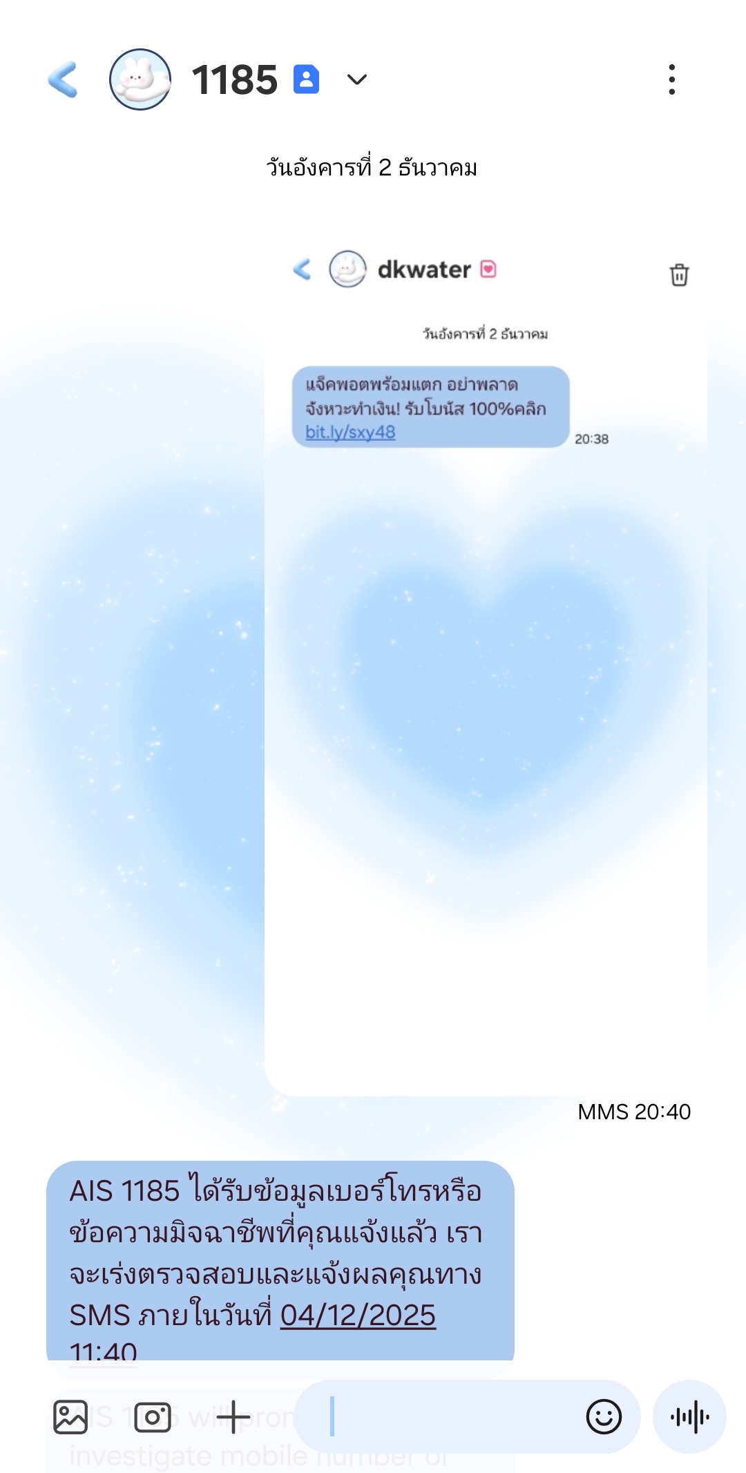 1185 ตรวจสอบsmsจากมิจฉาชีพได้จริงมั้ย