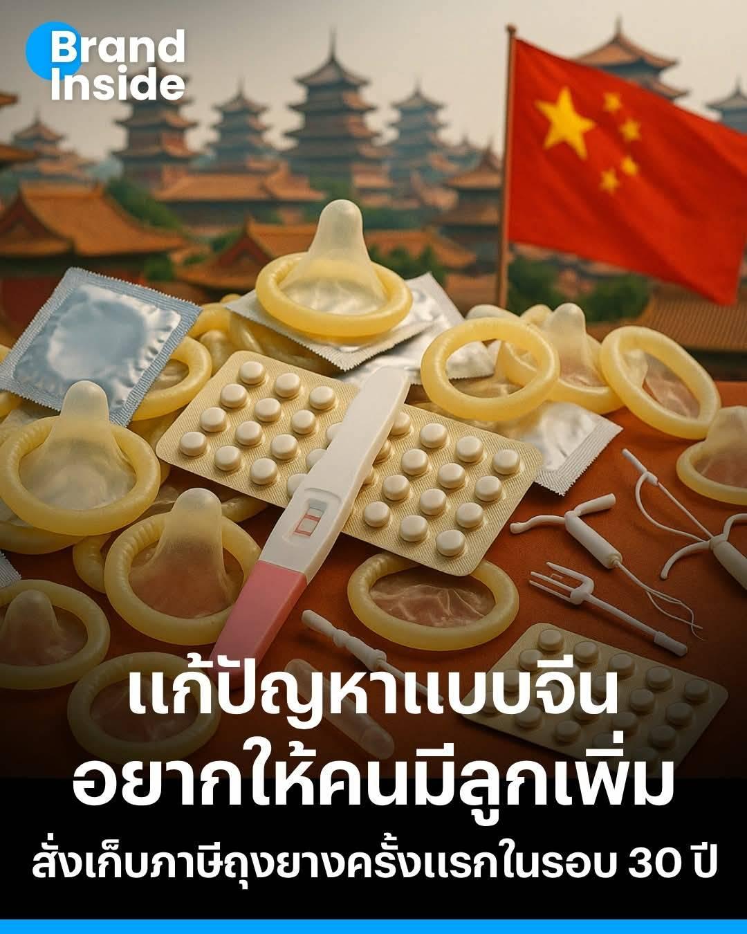 จีนประกาศเก็บภาษีมูลค่าเพิ่ม (VAT) 13% กับถุงยางอนามัย ยาคุม และอุปกรณ์คุมกำเนิดทุกชนิด เป็นครั้งแรกตั้งแต่ปี 1993 พลิกทิศทางนโยบายจากเดิมที่รัฐเคยบอก "อย่ามีลูกเยอะ" กลายเป็นยุคที่ต้องออกแรงเชียร์ให้คนมีลูกมากขึ้นแทน