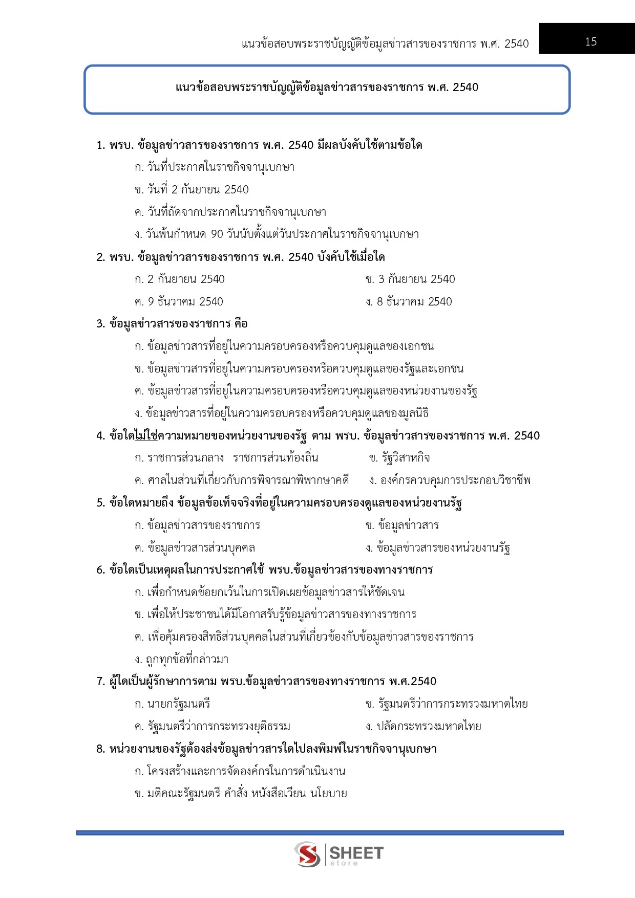 – แนวข้อสอบสรุปสาระสำคัญพระราชบัญญัติข้อมูลข่าวสารของราชการ พ.ศ. 2540
