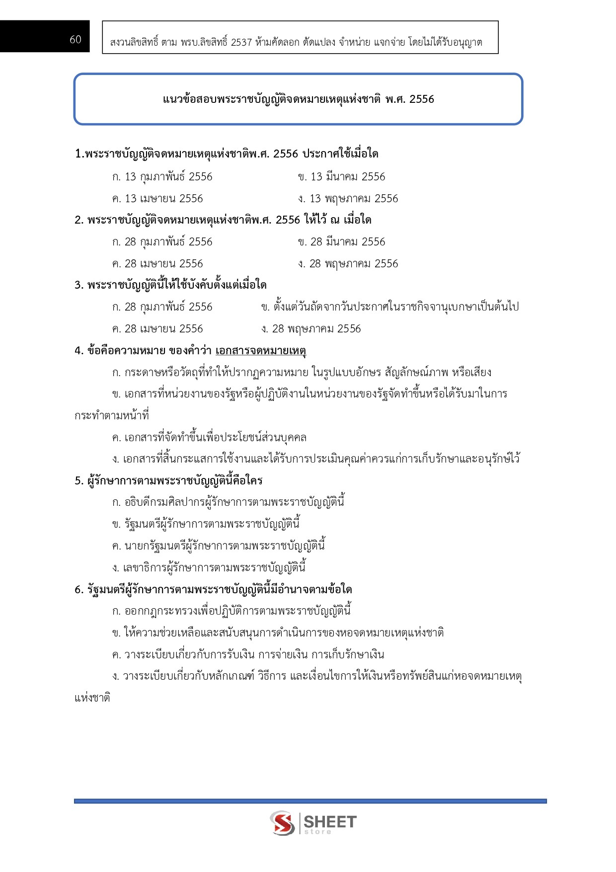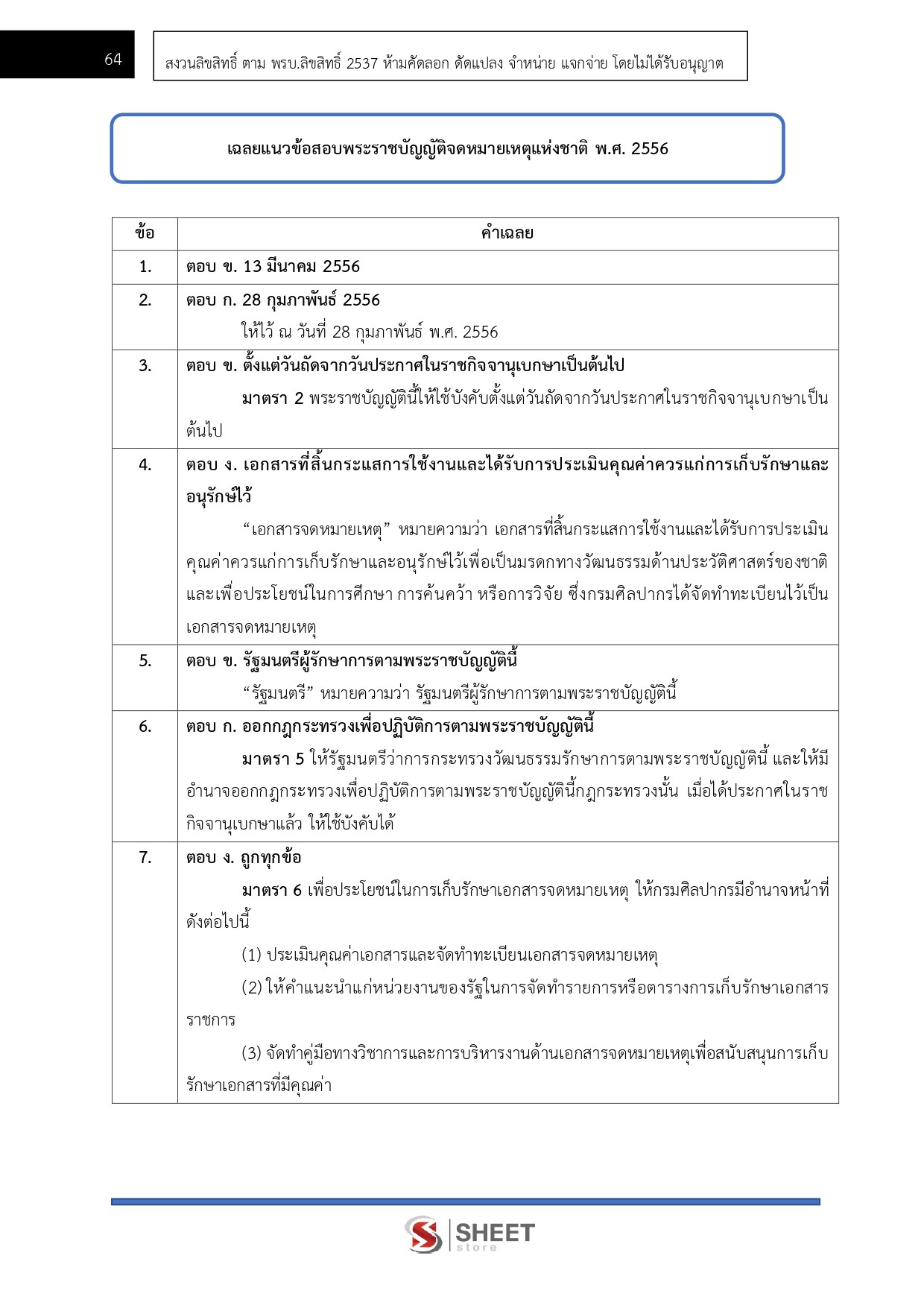 – แนวข้อสอบพระราชบัญญัติจดหมายเหตุแห่งชาติ พ.ศ. 2556