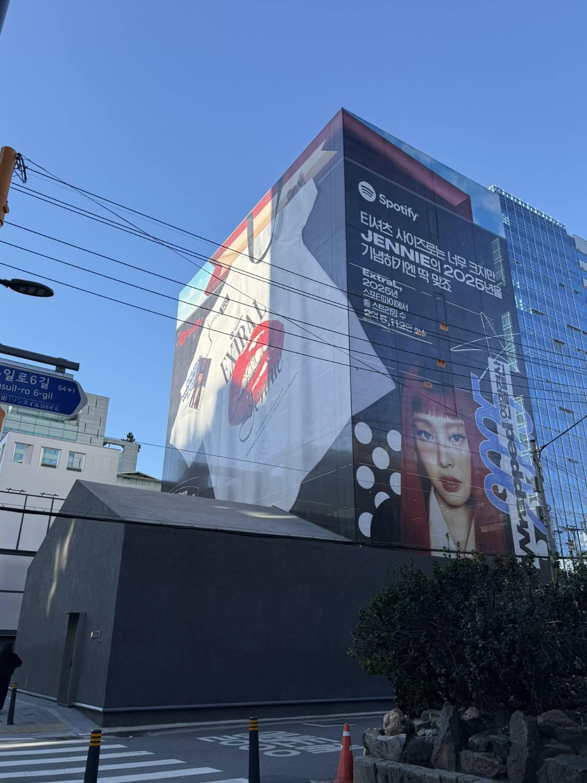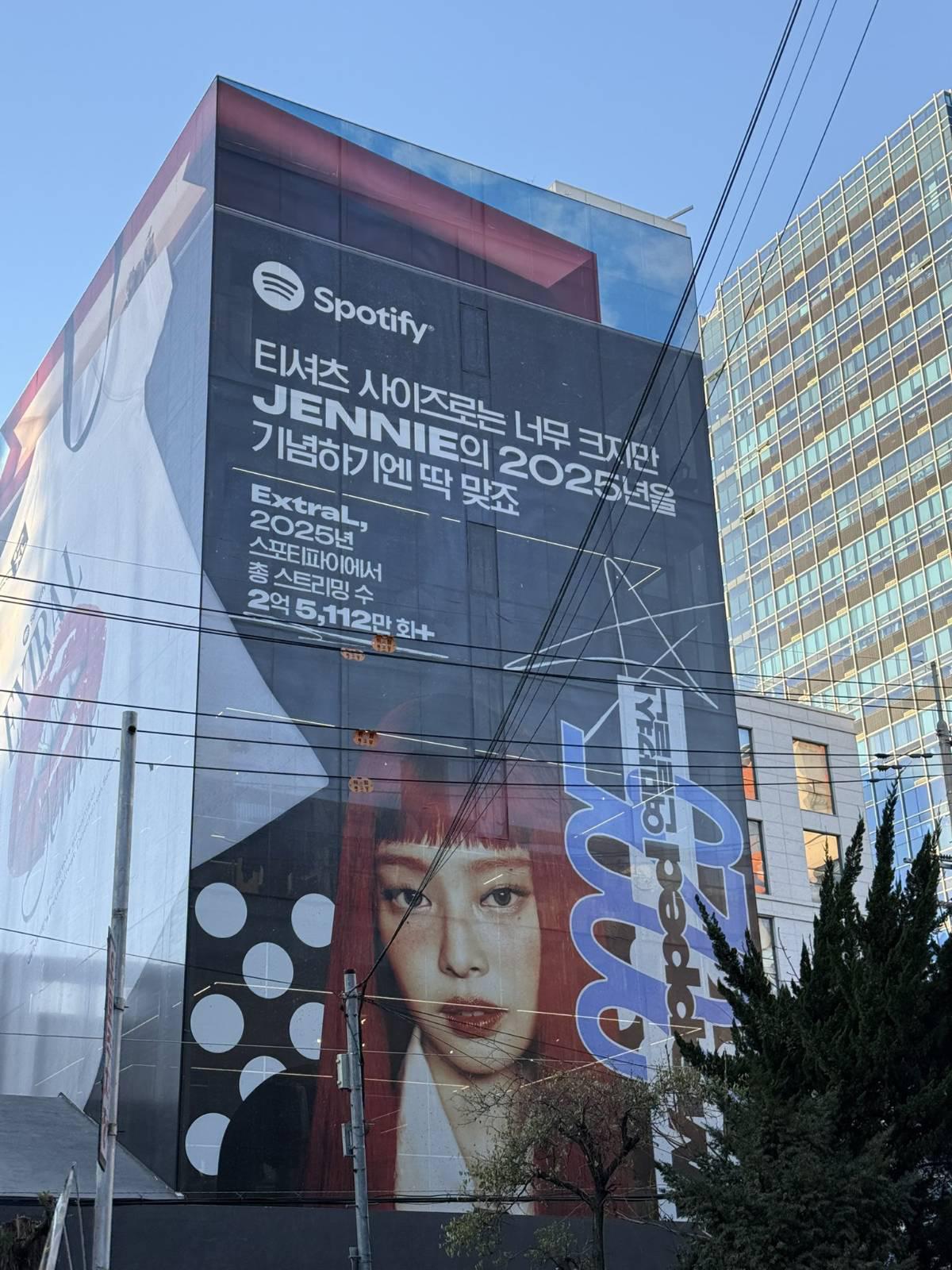 โฆษณาขนาดใหญ่ของ JENNIE ในเกาหลี จาก Spotify ส่วนหนึ่งของแคมเปญ Spotify Wrapped 2025 เพื่อเฉลิมฉลองความสำเร็จของเจนนี่ในปีนี้