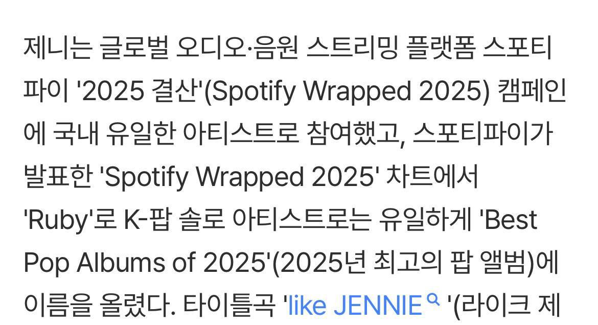 “เจนนี่เป็นศิลปินคนเดียวในเกาหลีที่ได้เข้าร่วมแคมเปญ Spotify Wrapped 2025”