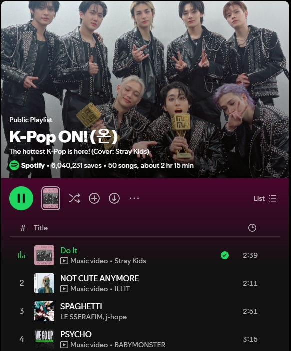 K-Pop ON! (온) คือ เพลย์ลิสต์หลักอย่างเป็นทางการของ Spotify สำหรับเพลง K-pop ทั่วโลก