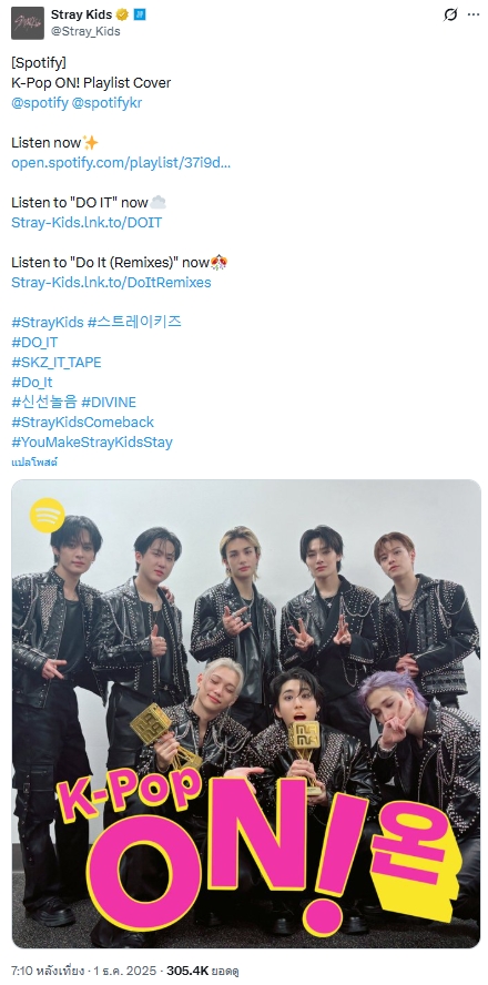 🔥 Stray Kids K-pop เดียวที่มี2ปกบน Spotify K-Pop ON! ปี2025 ปกแรกเปิดตัว"DO IT" ปกสองฉลองชัยชนะรางวัลแดซัง MAMA Awards