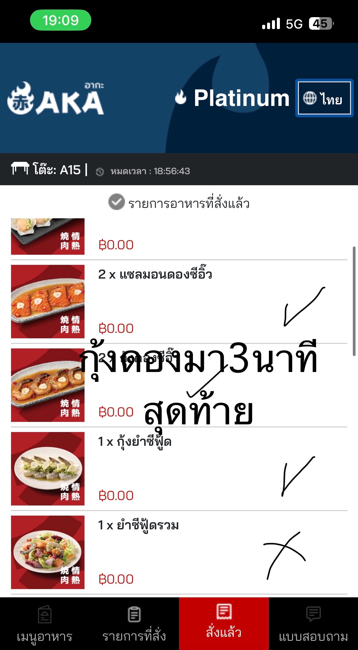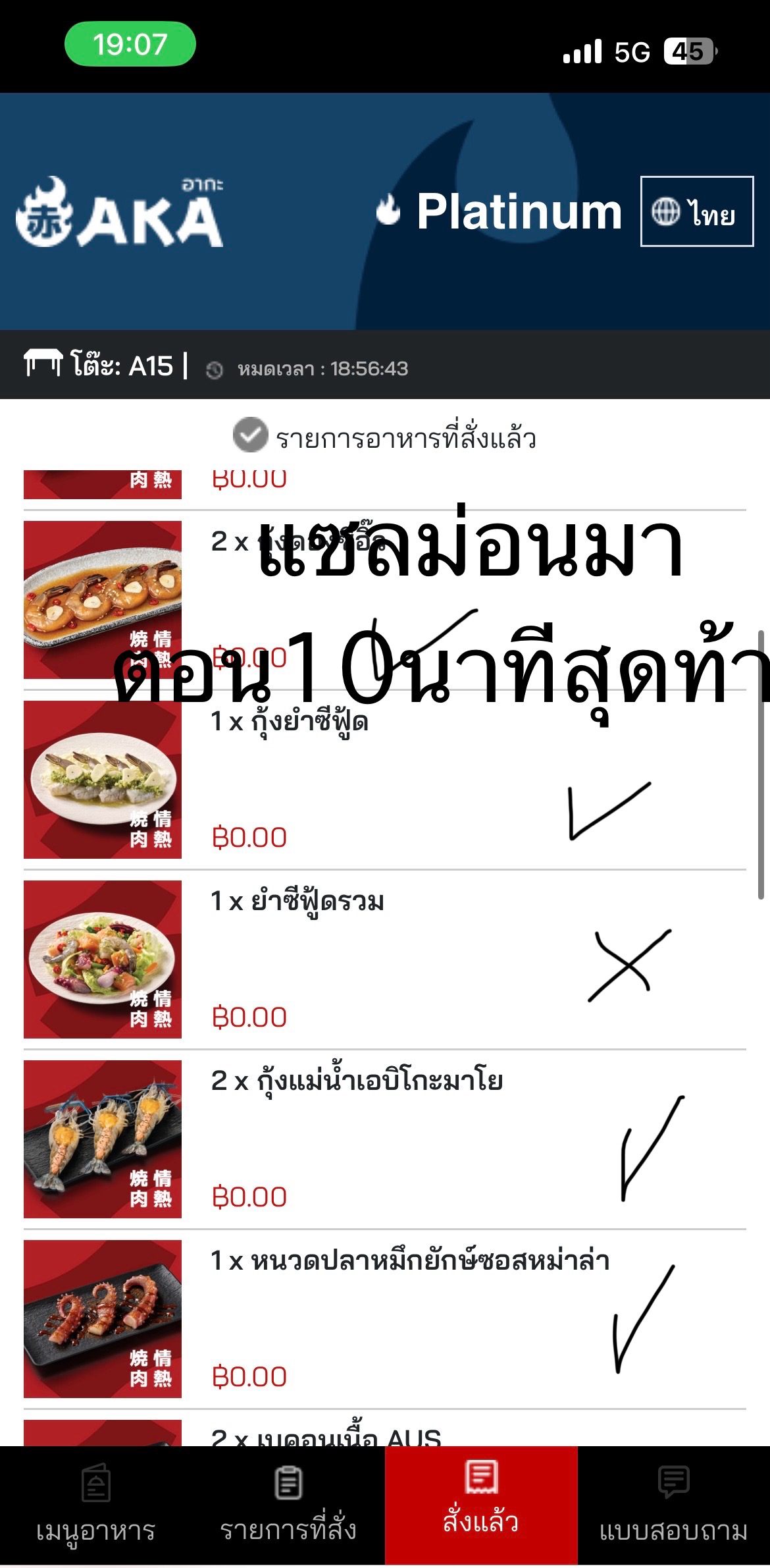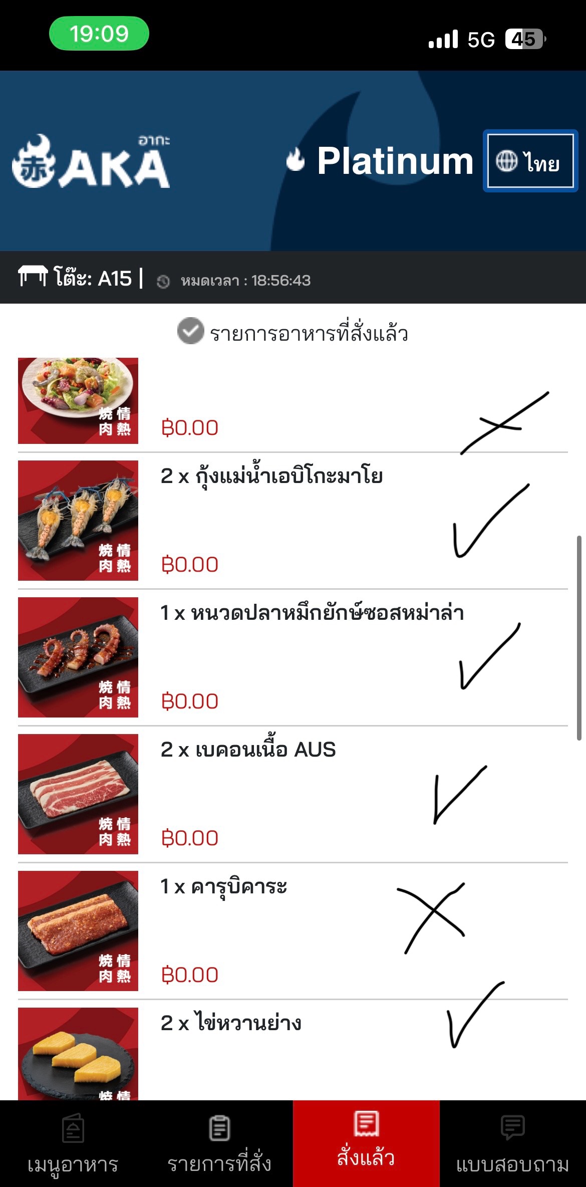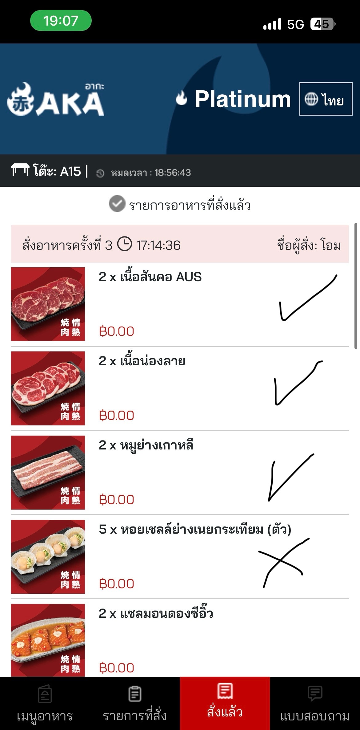 วันที่ 3/12/68 คือเราอยู่หาดใหญ่เนื่องจากน้ำท่วมพอน้ำลดก็อยากกินปิ้งย่าง ไม่รู้จะกินที่ไหนเพราะร้านประจำปิด เลยลองไปดูในห้างเพราะห้างเปิด เลยกินร้านนี้แหละ ร้าน AKA เรากินหัวละ700กว่าบาท+น้ำรีฟิลอีกหัวละ50 ตอนแรกของพวกเมนูเนื้อมา ก็มาค่อนข้างช้าแล้ว แต่ยอมรับ เนื้อกับน้ำจิ้ม อร่อยมาก แต่พวกเมนูทะเลดอง และแซลม่อนดอง มาช้ามากถามพนักงานก็บอกจะเช็คให้บางเมนูสั่งไปตั้งชั่วโมงก็ไม่มา พอจะหมดเวลา เหลือ5นาทีพนักงานเอามาให้ บอกว่าลูกค้าสามรถนั่งทานต่อได้เลย แต่นี่คือเสียความรู้สึกถ้าได้กินแต่เนื่อกิน ราคาหัวเริ่มต้นก็ได้มั้งราคาต่างกันเยอะ พอให้พนักงานดูรายการที่สั่ง แล้วพนักงานไปเช็คในครัวปรากฎว่ารายการที่สั่งไม่เข้าครัว แล้วเอาของที่สั่งมาให้ตอนเหลือเวลาอีก2นาที ผมจะให้ดูว่ารายการไหนมาบ้างไม่มาบ้าง