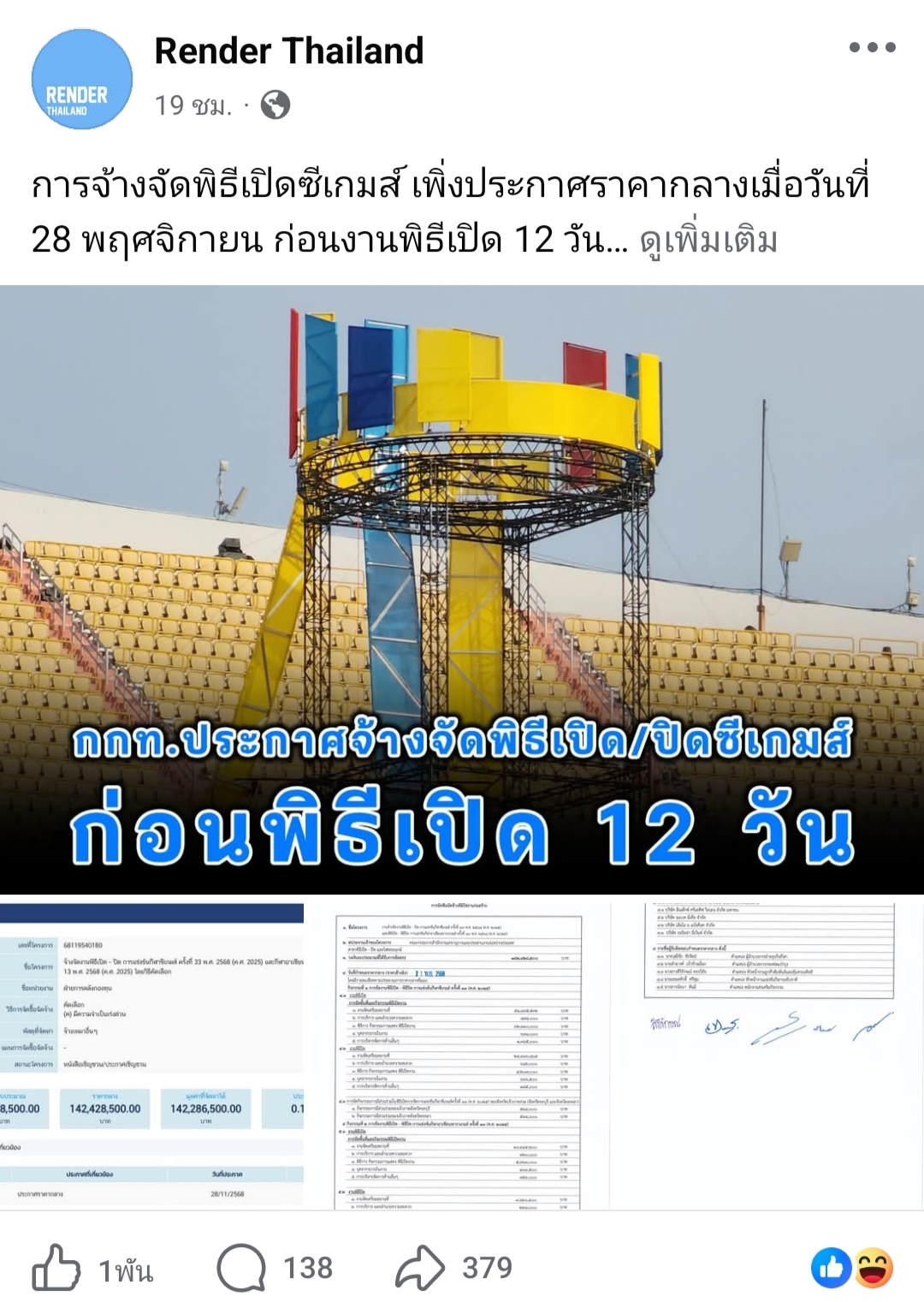 ซีเกมส์จัดจ้างจัดพิธีเปิด-ปิด ก่อนเปิดงาน 12 วัน !!! ผู้ว่ากกท.ผลงานแบบนี้ทำไมอยู่ทนจังเลย