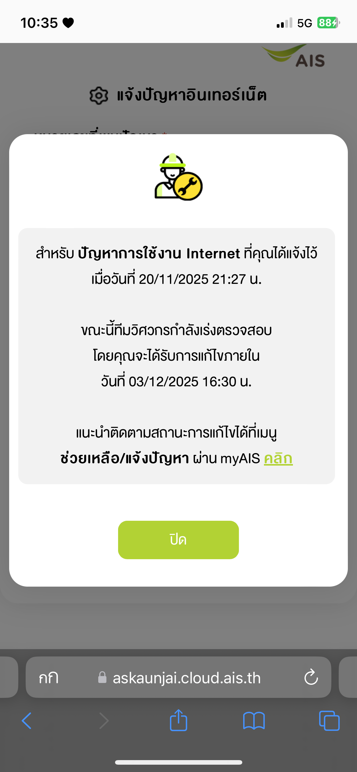 เน็ต Ais มีปัญหา สัญญาณอ่อนมาก ติดต่อไปหลายครั้งไม่ได้รับการแก้ไข
