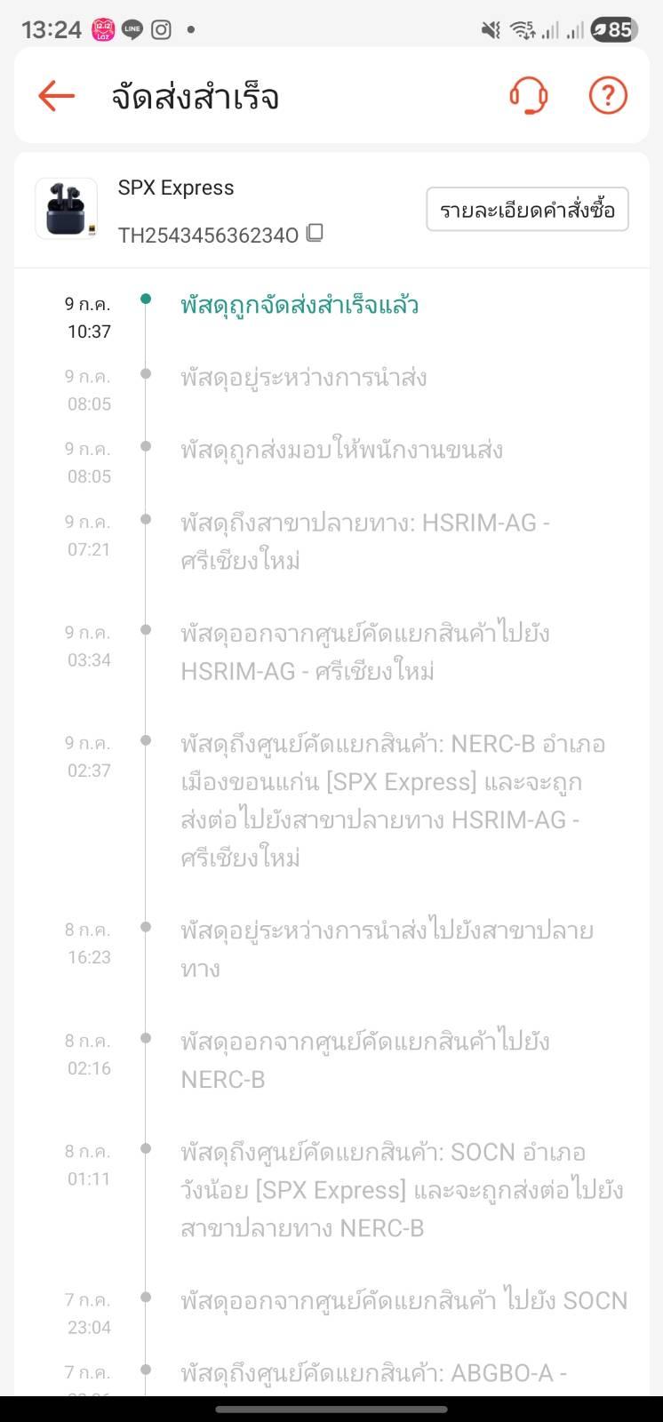 สั่งของจาก shopee ได้ขนส่ง spx express ของถึงคลังปลายทาง ได้ 5 วันไม่ยอมยิงนำส่ง แต่ของที่สั่งที่หลังกับมาส่ง โดยของที่ไม่ยอมมาส่งเป็นของชินใหญ่ แต่ของที่สั่งที่หลังเป็นชินเล็ก สั่งเกตุได้เลยว่า พนักง