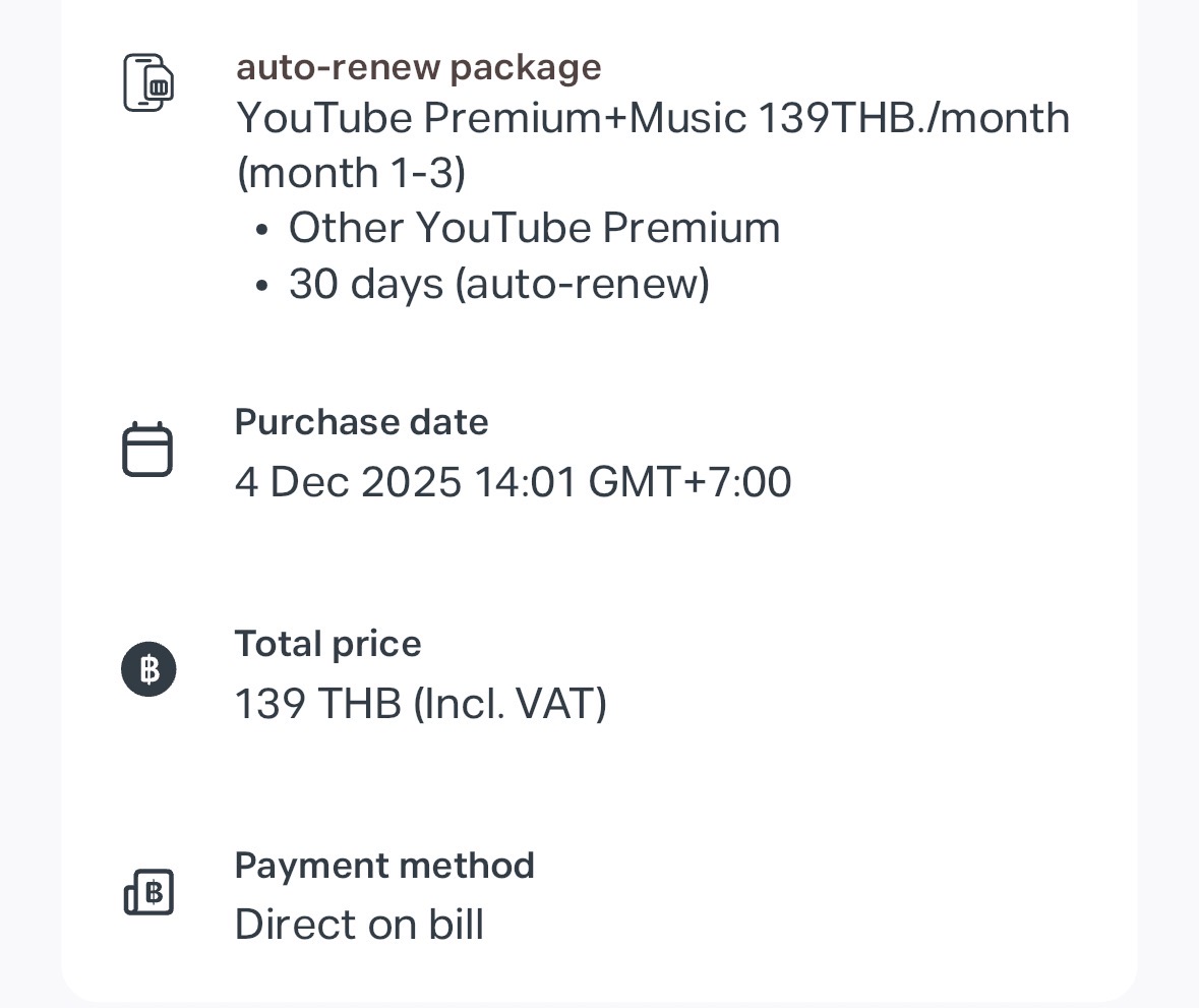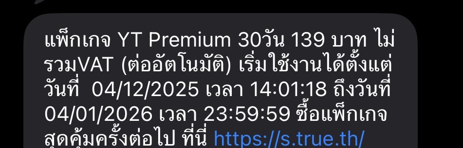 สอบถามเรื่อง YouTube premium ของทรูค่ะ