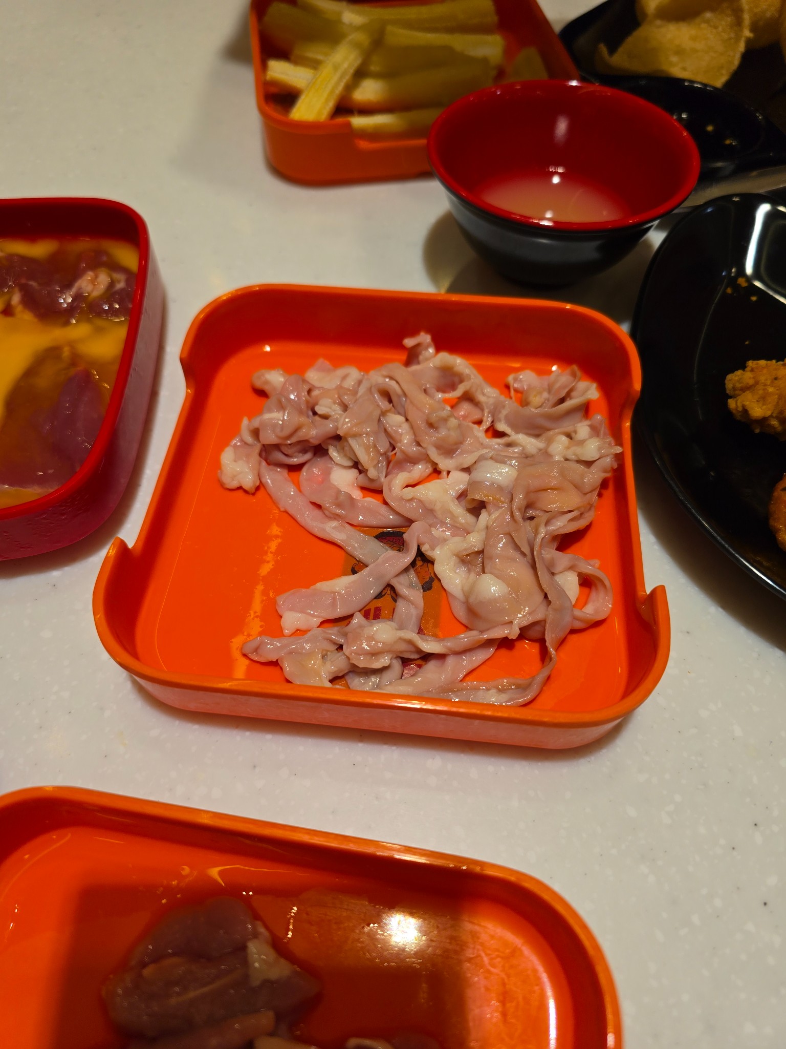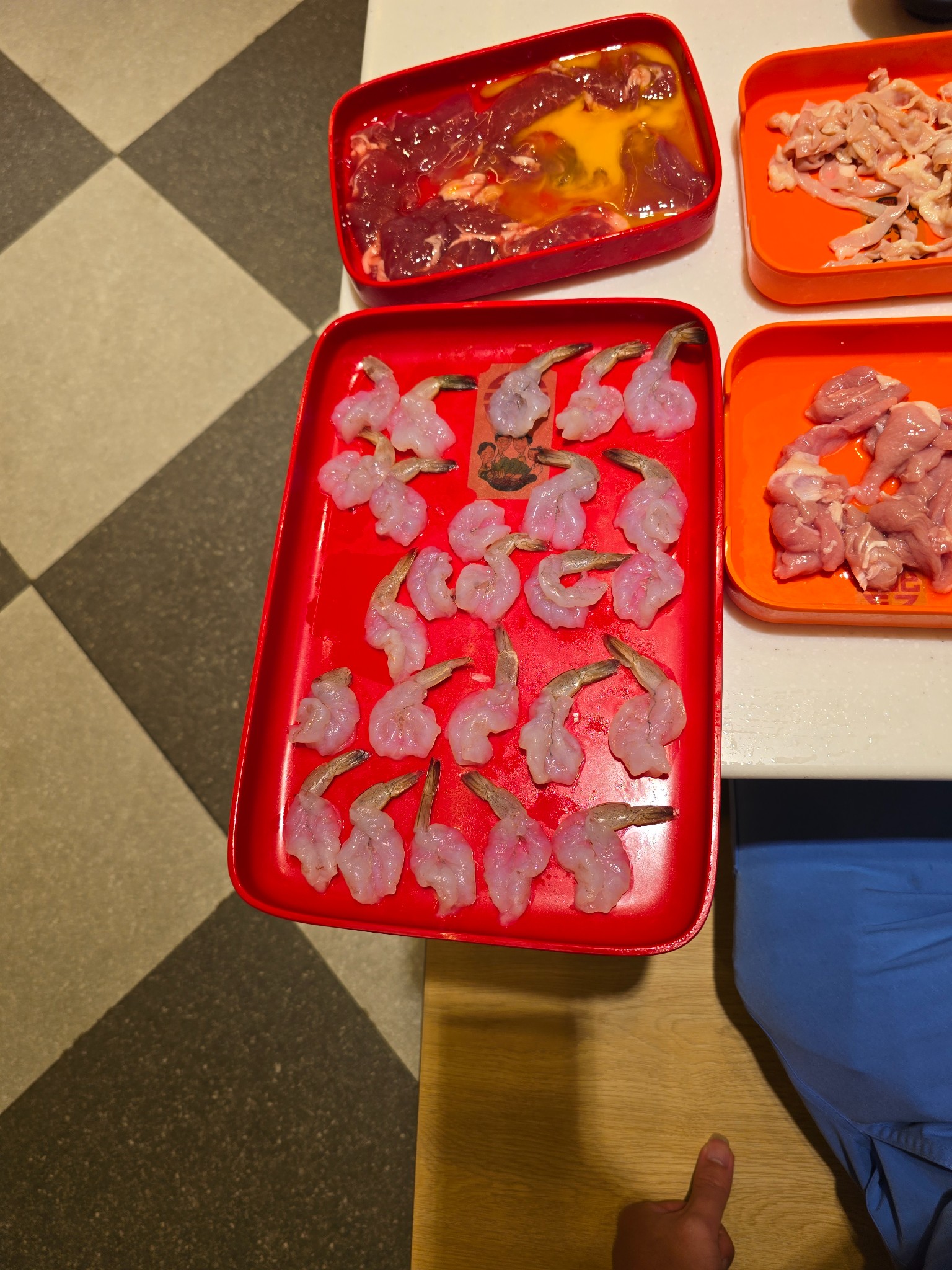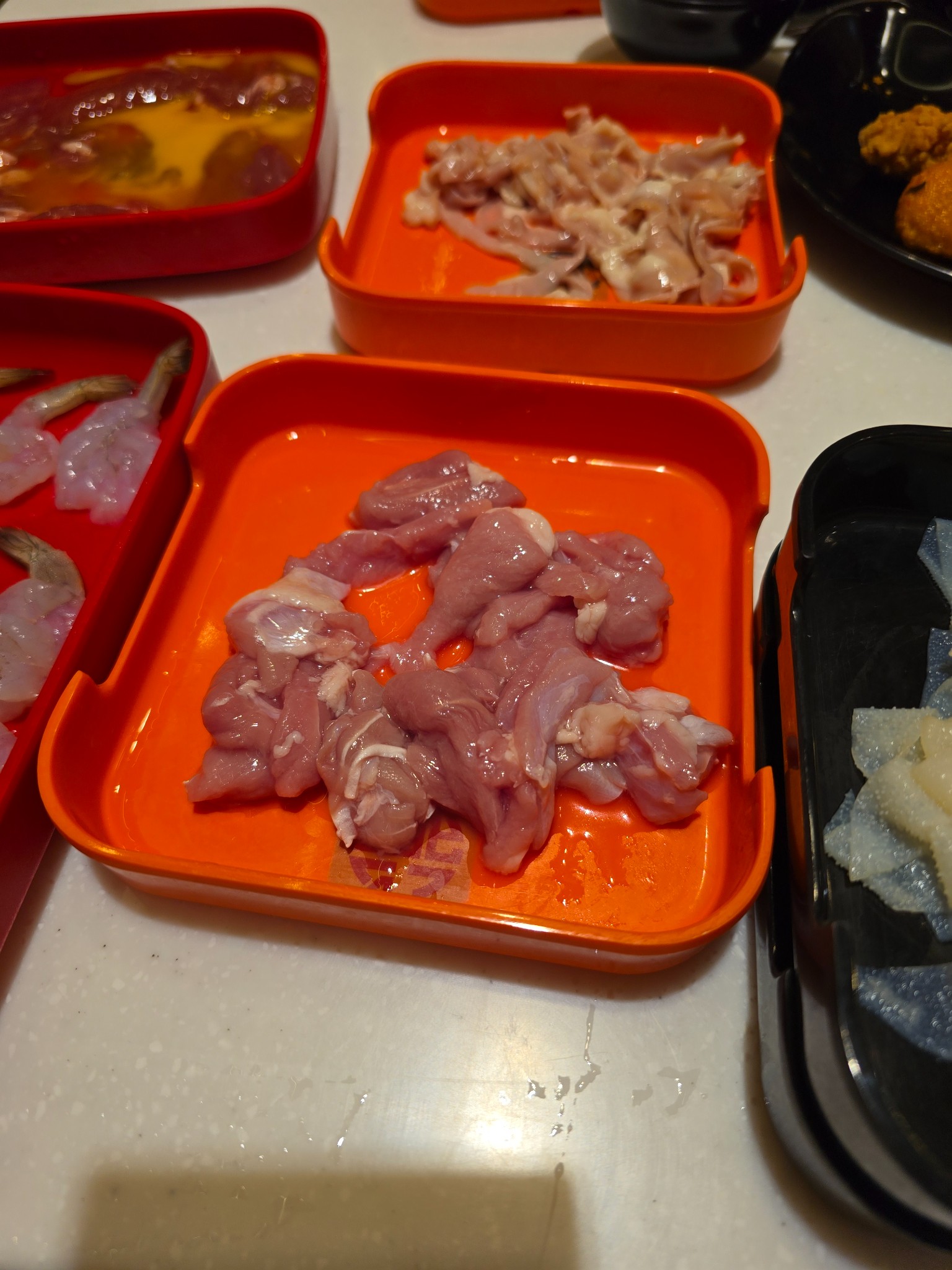 ⚠️ แต่มีเรื่องให้สะกิดใจนิดนึงครับ: ตอนเสิร์ฟมามีอยู่ถาดนึง (ถาดดำ ๆ) ที่รู้สึกว่ากุ้งมันดูแปลก ๆ... ดูตัวเล็กกว่าปกติและเนื้อจะเด้งกรอบ ไม่ใช่แบบนุ่ม ๆ เหมือนที่สั่งในรอบแรก ๆ ไม่แน่ใจว่าเขาเสิร์ฟผิดเป็นกุ้งแก้วธรรมดาหรือเปล่า? แต่ก็ด้วยความหิว (และอร่อยอยู่ดี) ก็เลยกินไปจนหมดครับ 😅 ถ้าใครเคยเจอแบบนี้ หรือพนักงานร้านผ่านมาช่วยตอบหน่อยได้ไหมครับว่ามันคือกุ้งอะไร?