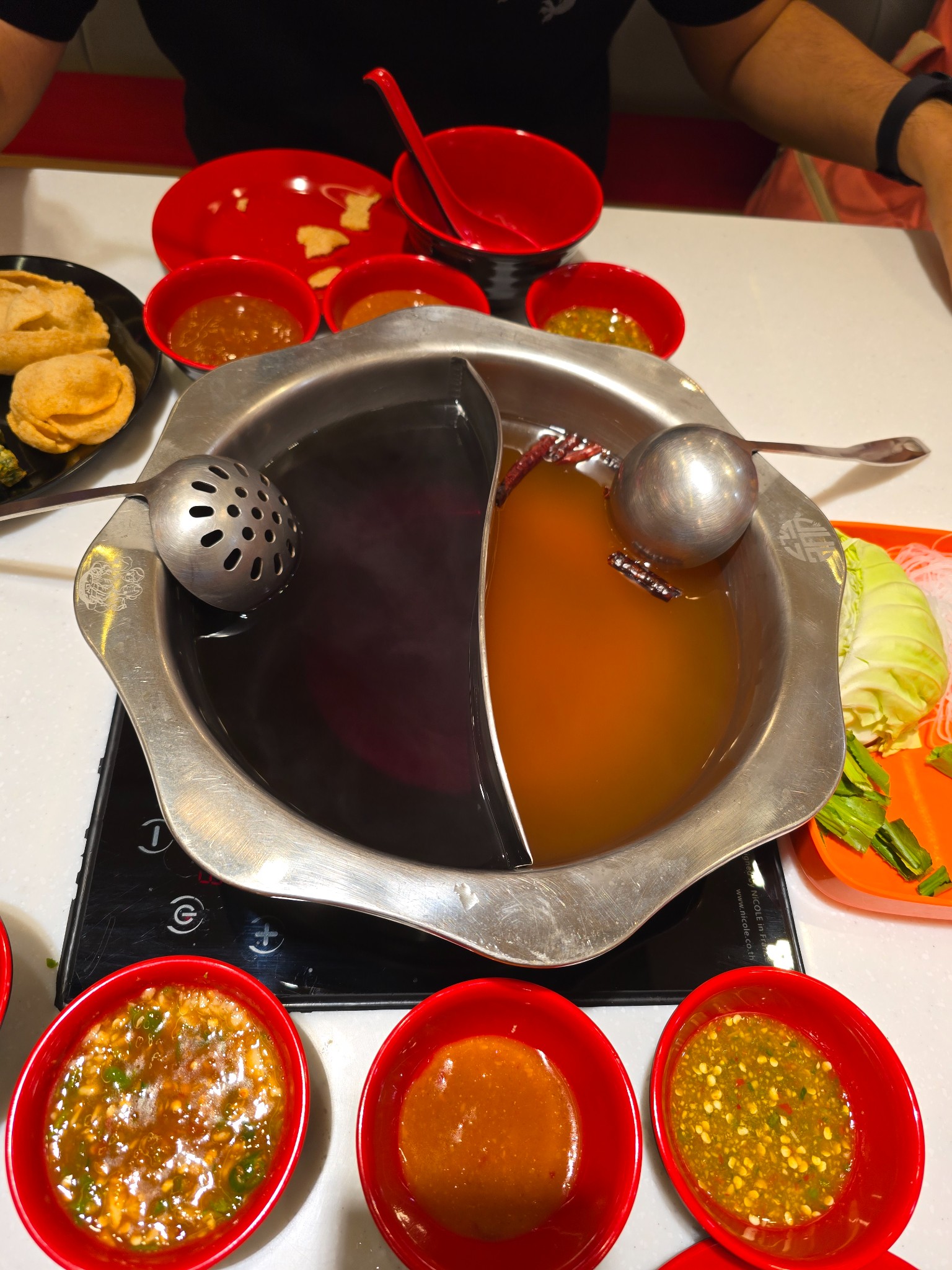 ขอเปิดด้วยน้ำซุปที่ผมยกให้เป็นสุดยอดก่อนเลย คือ สุกี้อีสาน แจ่วฮ้อน ครับ! 🤤 แซ่บถึงใจมากจริง ๆ ลวกอะไรก็เข้ากันไปหมด ซดเพลินจนลืมไปเลยว่ามากินบุฟเฟต์!