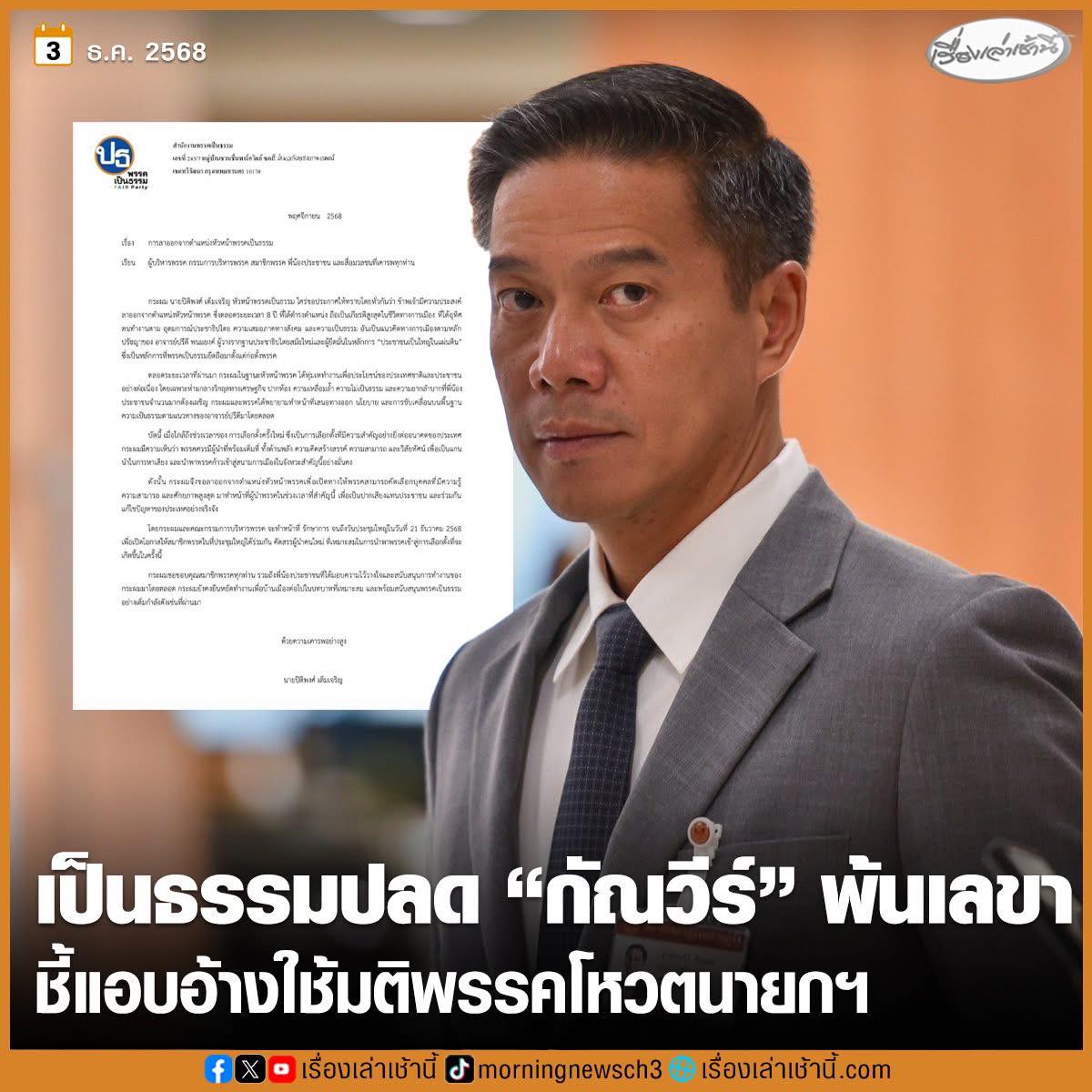 พรรคเป็นธรรม ปลดเลขาอย่างเป็นธรรม แสดงว่า เลขาพรรคไม่ประพฤติตามทำนองคลองธรรม