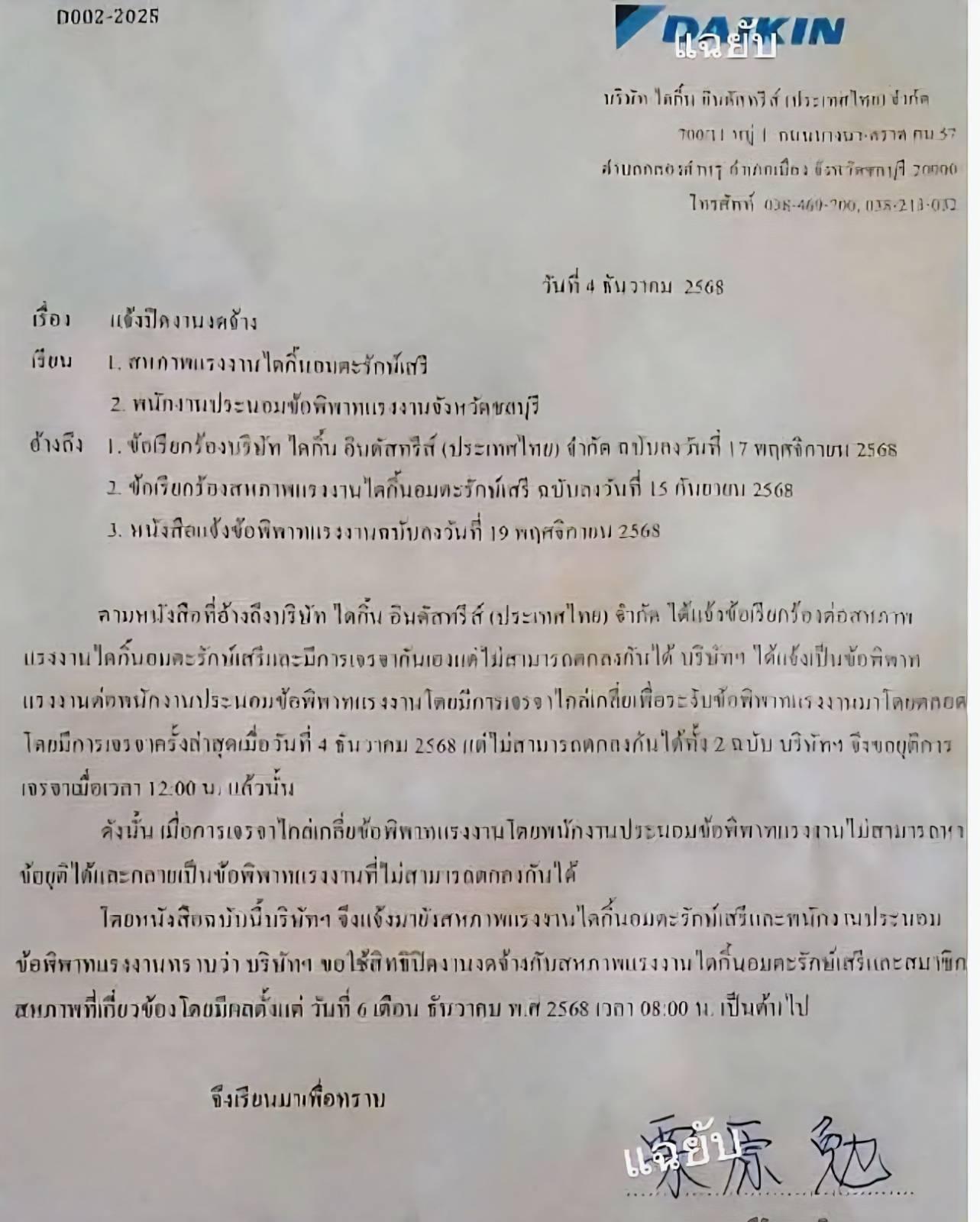 เรียกร้องอยากได้โบนัสเยอะๆ ทองเยอะๆ บอกบริษัทได้กำไรปีนี้เยอะต้องจ่ายเยอะ ตั้งกลุ่มขึ้นมาประท้วงสร้างความรำคาญคนที่อยากอยู่ต่อ เอาหละในวันนี้ ไดกิ้นจัดให้