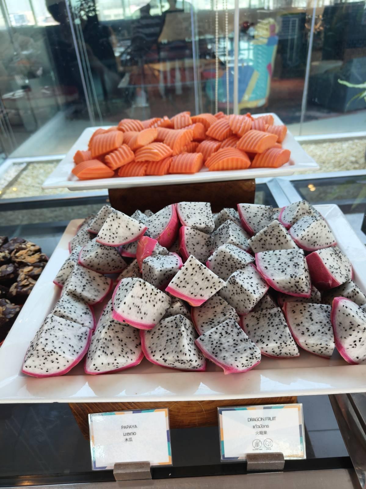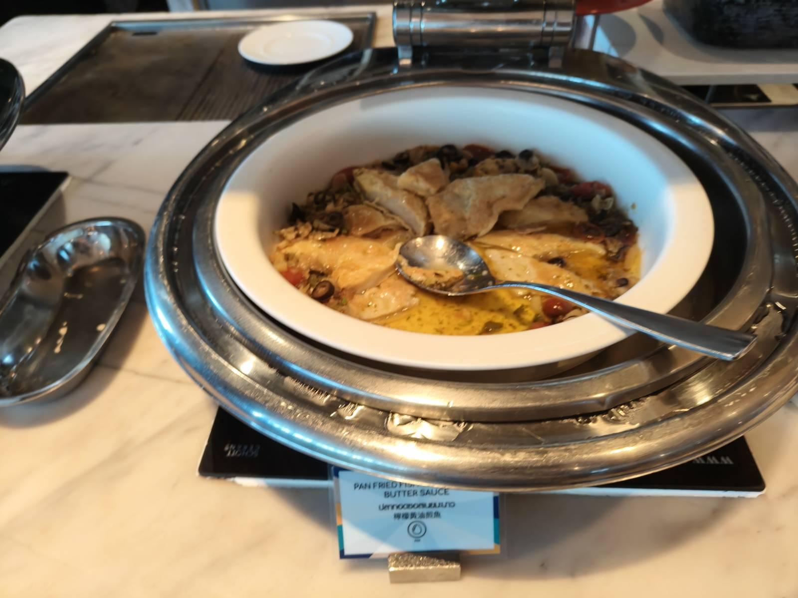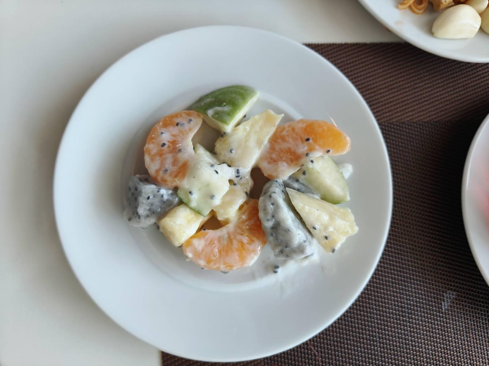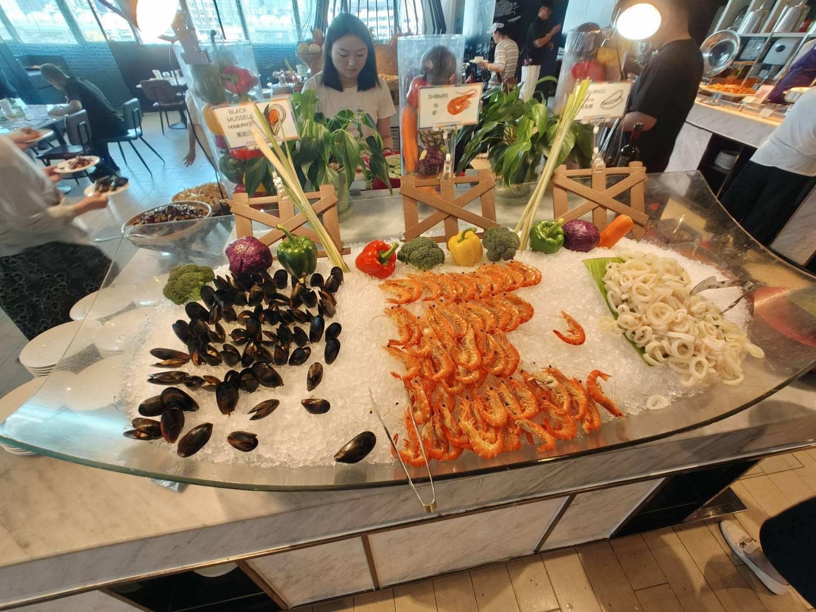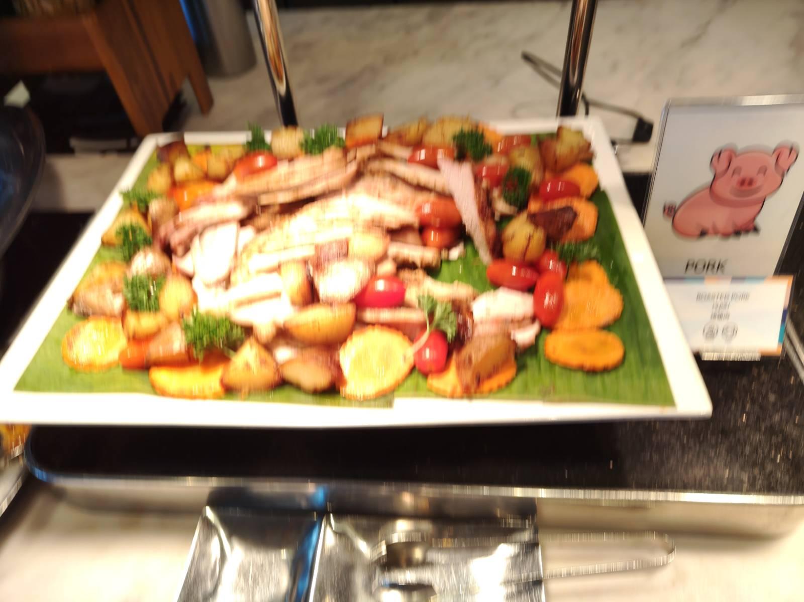 บรรยากาศที่ห้องอาหารเป็นวิวสระว่ายน้ำ ดูดีเลยทีเดียว ส่วนโต๊ะมีหลายโต๊ะ ไม่แออัด จัดได้ดีเลย แต่ แต่ลูกค้าจะเป็นทัวร์จีนซะส่วนใหญ่ แต่ไม่ใช่จีนตระกูลชิงนะ มีต่อคิวอย่างระเบียบเรียบร้อย เสียงก็ไม่ดังมาก และมาไวไปไว อาหารก็ไม่ได้ตักเลอะเทอะ
