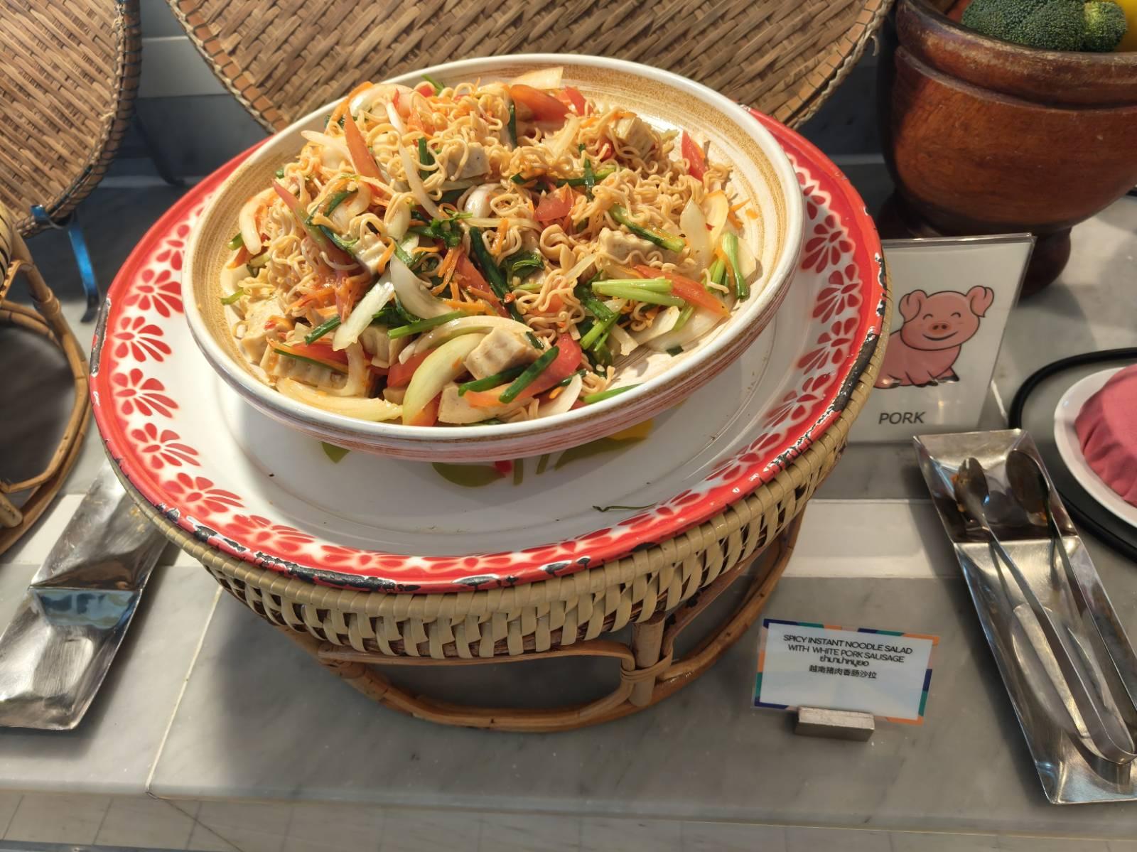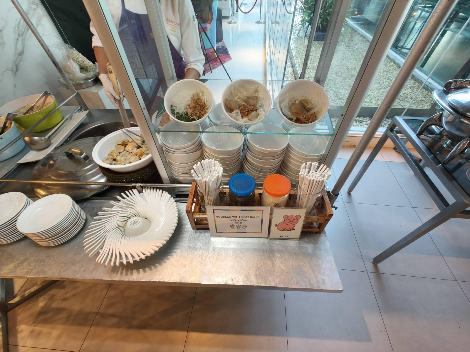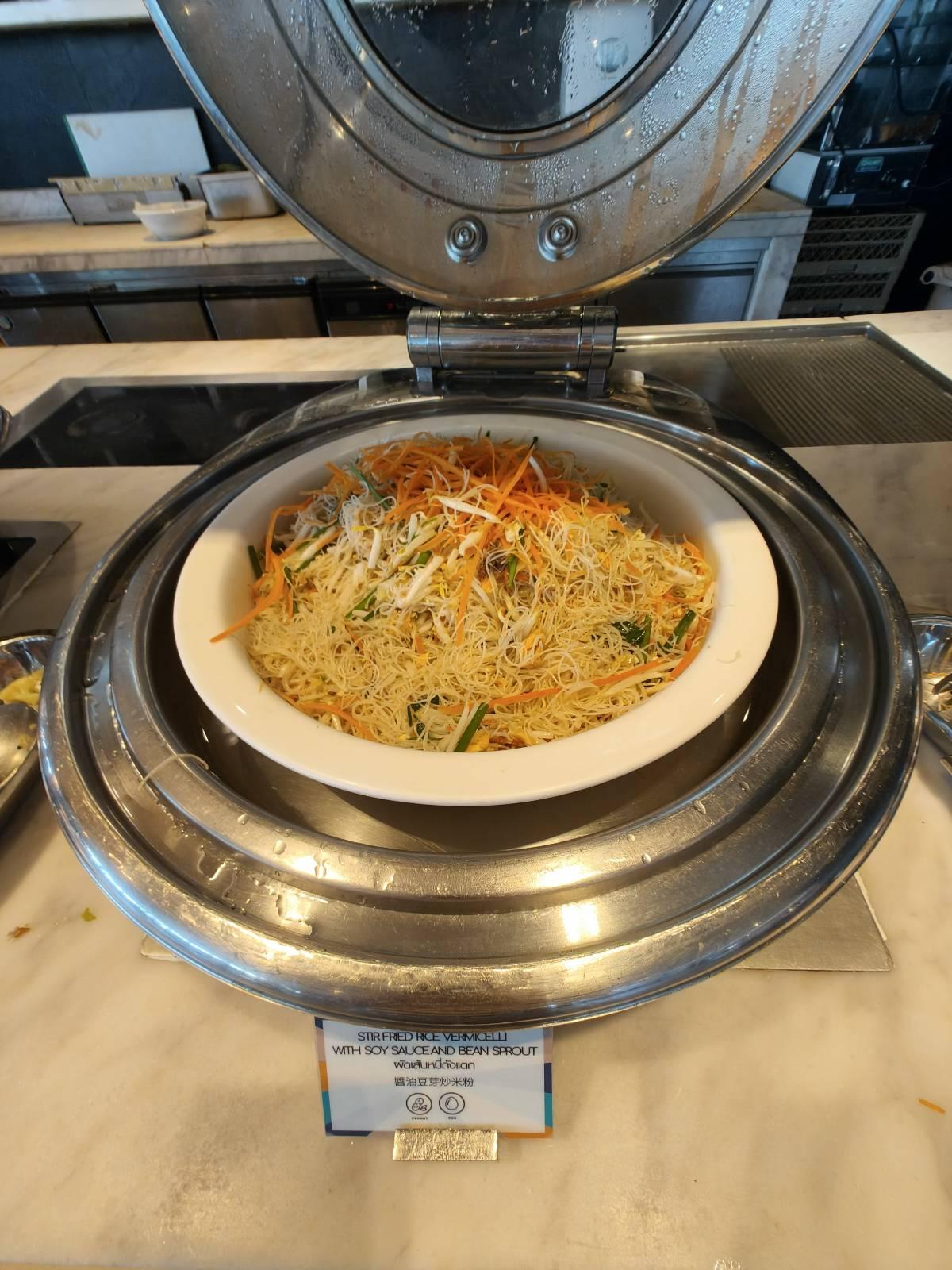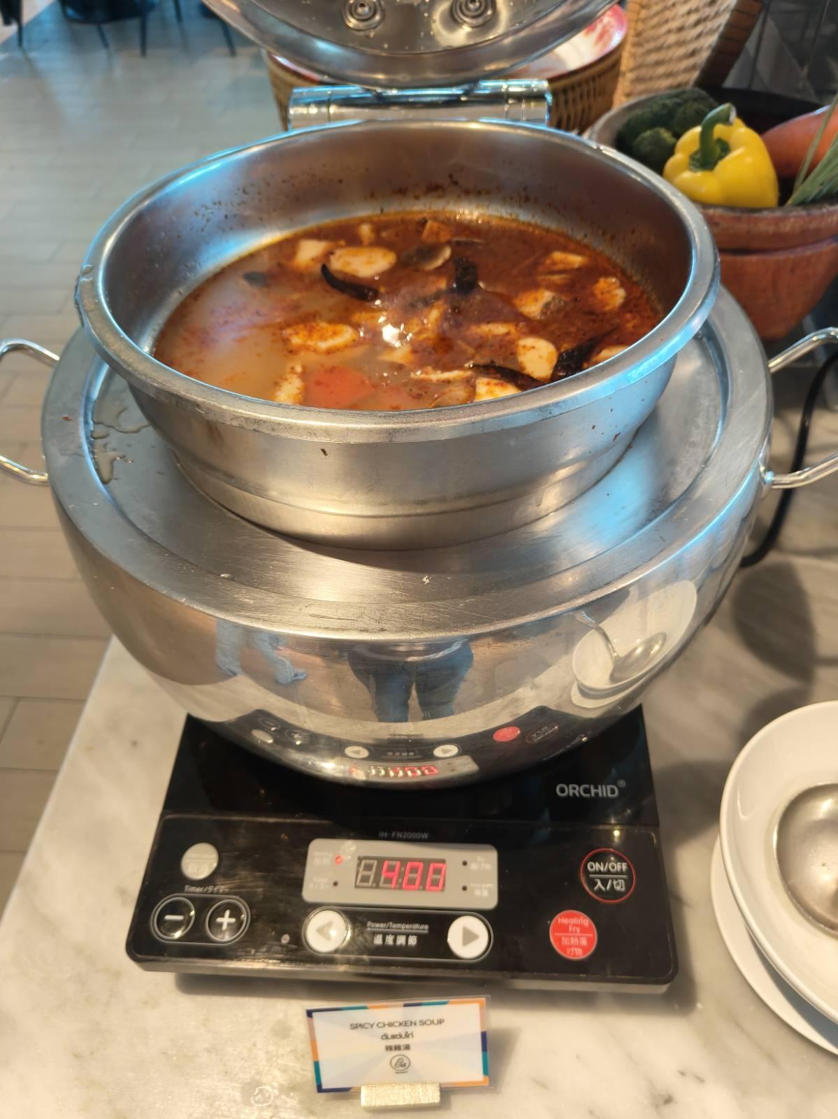 ด้านขวาจะเป็นอาหารหม้อร้อน Hot Dish ที่หลากหลายเลยทีเดียว มีข้าวสวย,ผัดเส้นหมี่ถังแตก (ชื่อแปลกๆ), ผัดผักรวมมิตร,ไก่ผัดเปรี้ยวหวาน,ไก่ย่างซอสบาร์บีคิว,แกงมันและถั่วอินเดีย,ปลาทอดซอสเนยมะนาว,สปาเก็ตตี้ครีมซอส,พล่าเต้าหู้,ยำมาม่าหมูยอ ส่วนซุปจะมี ต้มแซ่บไก่และซุปเห็ด (ซุปเห็ด🍄เข้มข้นกลมกล่อมอร่อยดี) ของกินเล่นจะมี เฟรนฟรายและพิซซ่า เยอะอยู่เหมือนกันนะเนี่ย