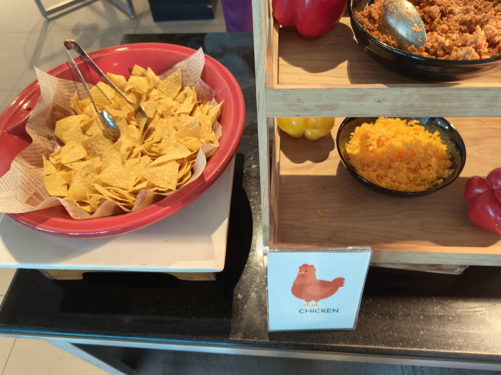 ข้างกัน เจอของแปลก ป้ายเขียนว่า Chickenมีรูปไก่ด้วย ดูแล้ว น่าจะเป็นนาโช่ ซอสซัลซา หรือ ทาโก้นี่แหละ ลุงลองกินแล้ว อร่อยดี แต่แผ่นใหญ่ไปนิดนึง