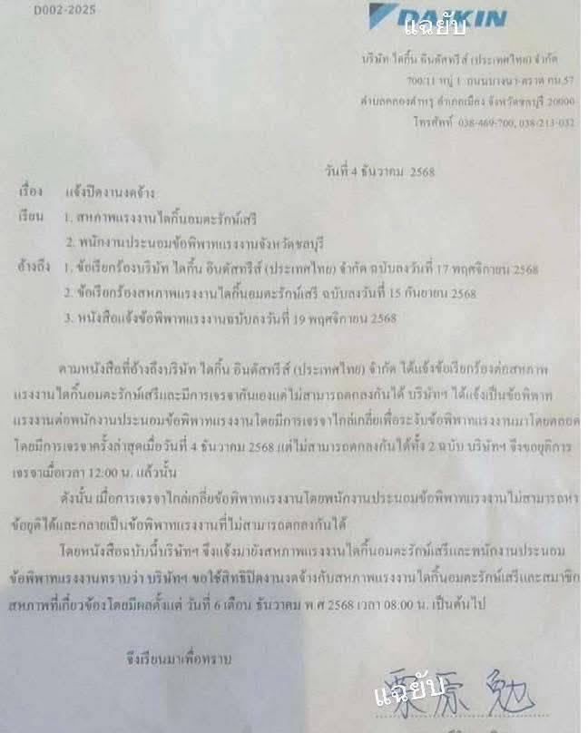 เรียบร้อย!!!! บริษัทดังประกาศปิดงานงดจ้าง สหภาพแรงงานรวมถึงสมาชิกทั้งหมด เหตุประท้วงเงินโบนัส