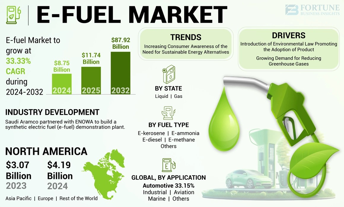 - E-Fuel Investment: ตลาด E-fuel แม้ปัจจุบันจะยังเล็ก แต่การเปิดช่องของ EU จะดึงดูดเม็ดเงินวิจัยมหาศาล คาดการณ์ว่าตลาด E-fuel โลกจะมีมูลค่าเติบโตจาก 7.8 พันล้านดอลลาร์ ในปี 2024 พุ่งไปสู่ 1.2 แสนล้านดอลลาร์ ภายในปี 2034 (CAGR 32%)