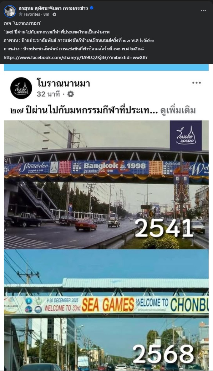 "ซีเกมส์ 2025" งานเข้าอีก เพจดังแฉภาพโปรโมทบนสะพานลอย ที่ชลบุรี เทียบกับ ป้ายโฆษณา "เอเชี่ยนเกมส์ 1998"