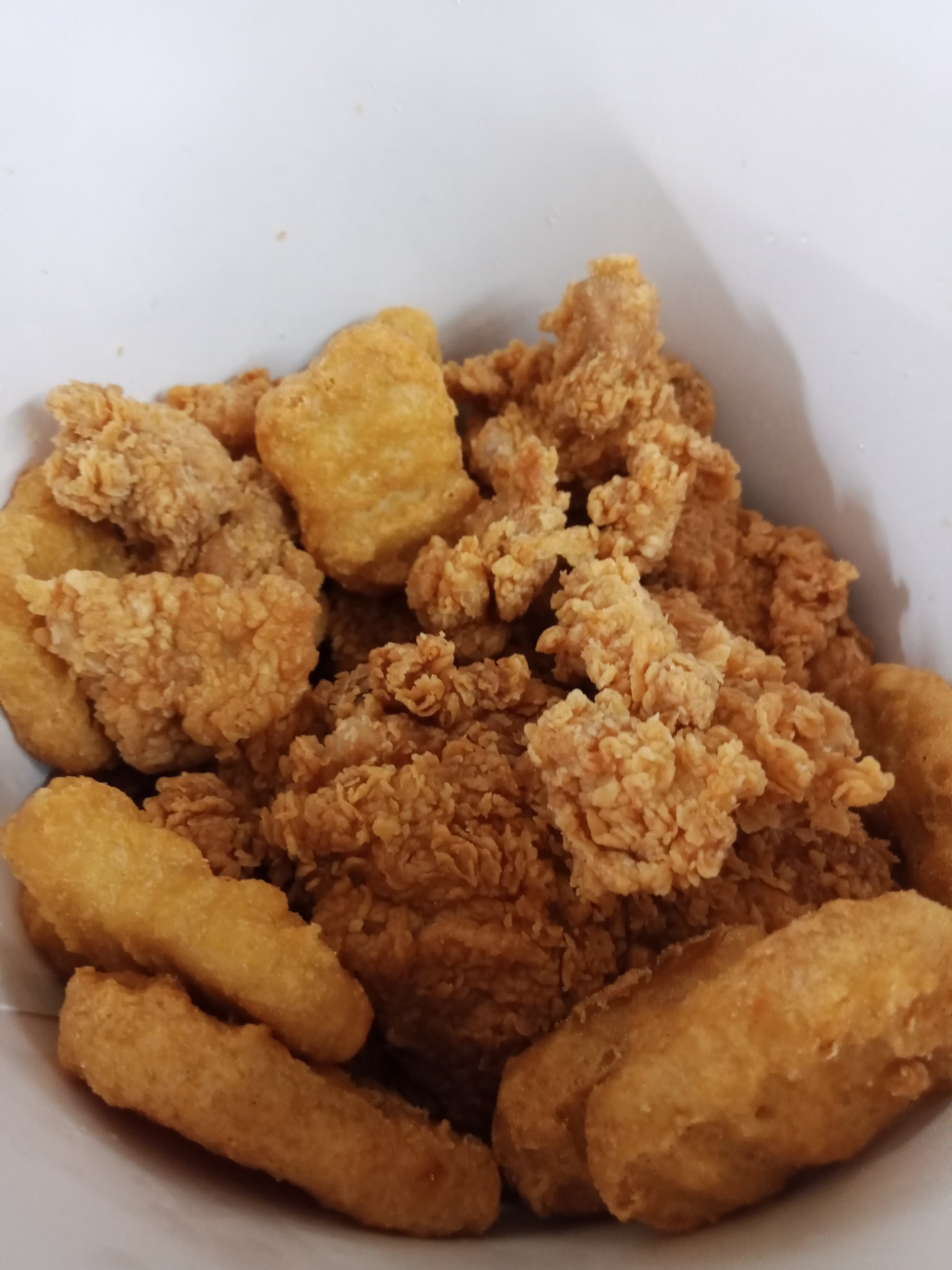 ไก่ทอดชิ้นใหญ่ 6 ชิ้น + ชิกเก้นป๊อป 14 ชิ้น + นักเก็ตส์ 12 ชิ้น + มันบด 2 ถ้วย