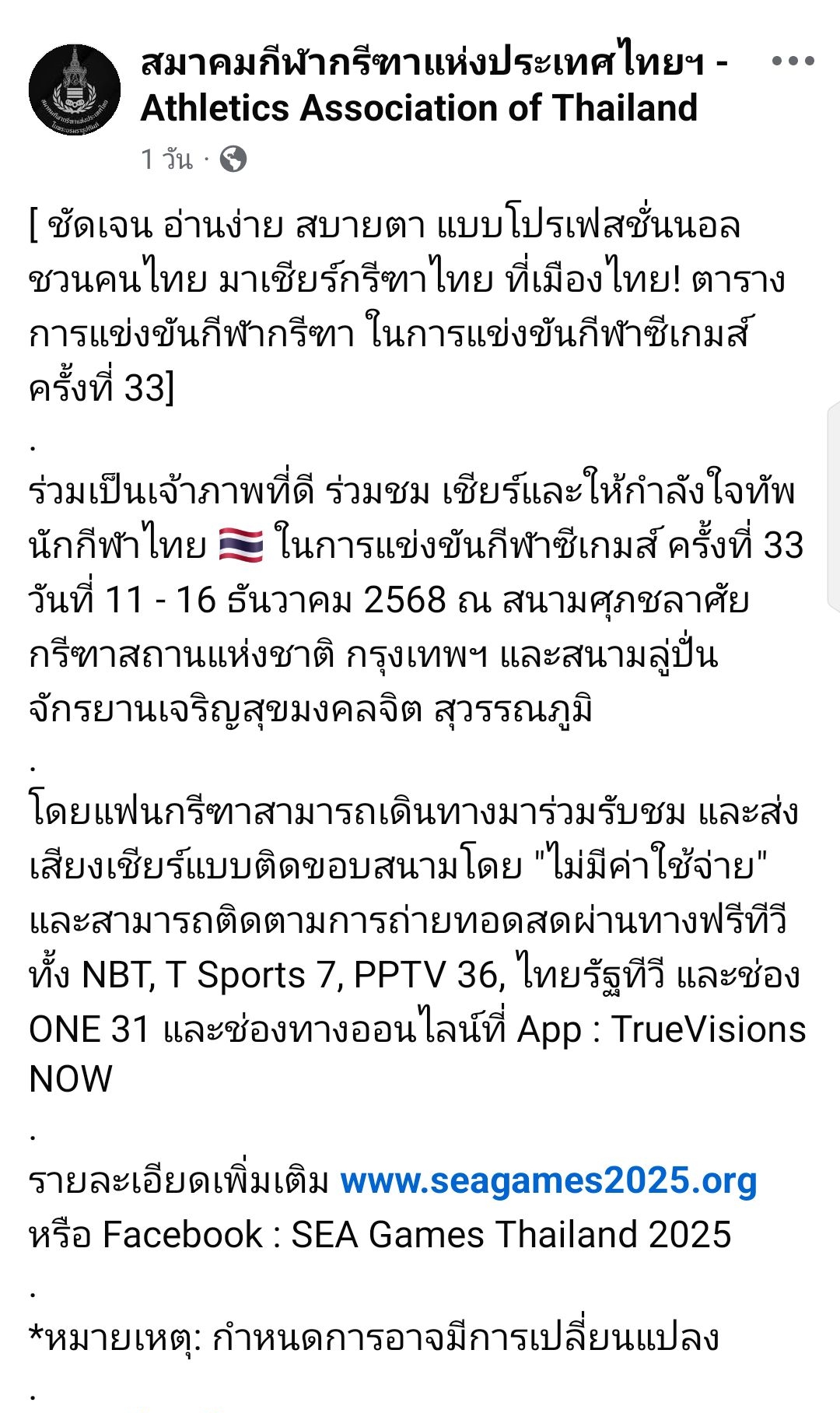 🧐 ชัดเจน อ่านง่าย สบายตา แบบโปรเฟสชั่นนอล ชวนคนไทย มาเชียร์กรีฑาไทย ที่เมืองไทย!