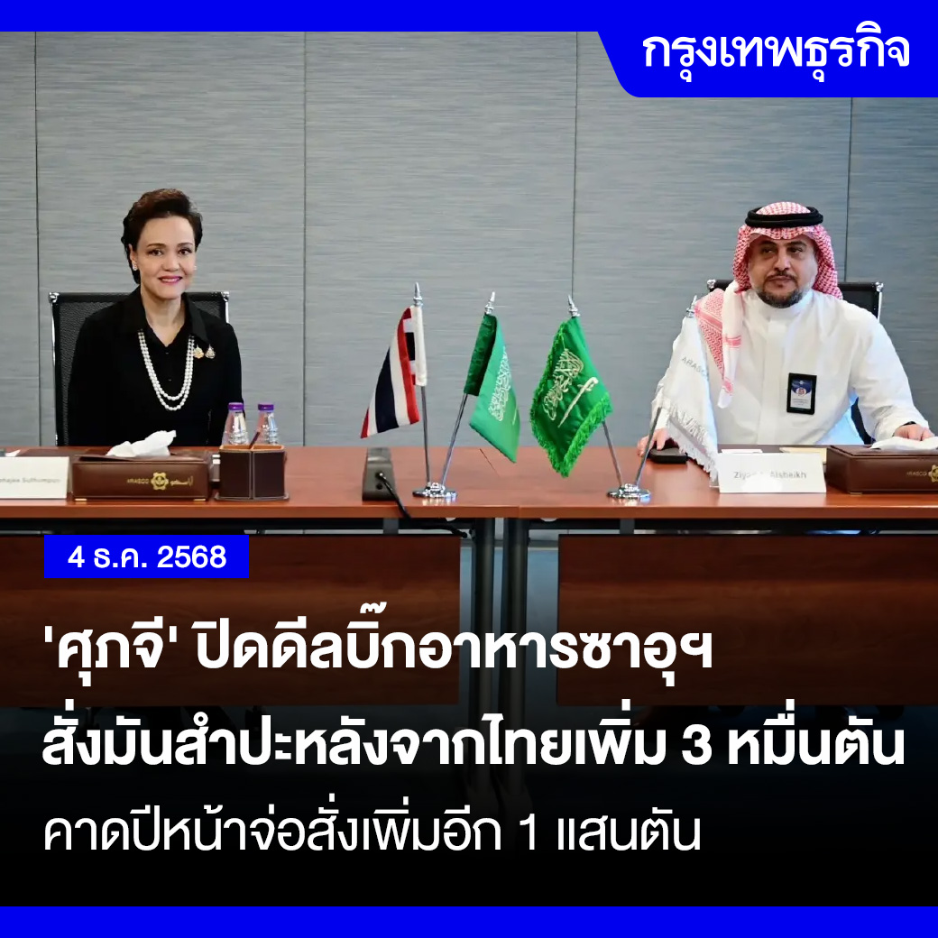 “ศุภจี”นำทีมพาณิชย์ หารือ "ARASCO"บริษัทยักษ์ใหญ่ด้านอาหาร ซาอุฯ เผย สั่งมันสำปะหลังอัดเม็ดเพิ่ม 3 หมื่นตันหลังส่งออกไปแล้ว 2 หมื่นตัน เสริมความมั่นคงทางอาหารในประเทศ ตั้งเป้าปีหน้าสั่งเพิ่มอีก 1 แสนตัน