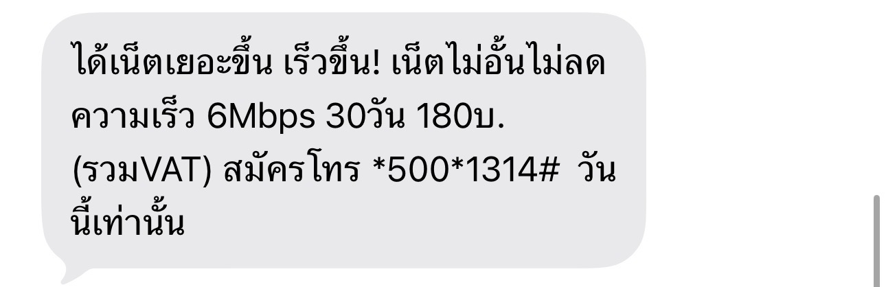 ปกติจะเติมเน็นผ่านแอพธนาคารไทยพาณิชย์ พอเติมเสร็จก็จะหักตัง แล้วก็จะมีข้อความเข้ามาว่าสมัครเน็ตแล้ว แต่วันนี้ไม่เหมือนเดิม เติมแล้ว หักตังแล้ว แต่ไม่มีข้อความเข้า ก็เลยกด*900# เช็คเน็ต สรุปไม่มี