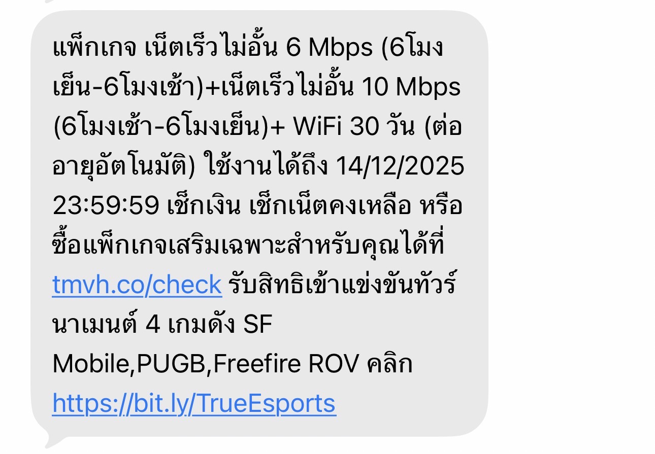 เน็ตทรูมูฟ 700 MB+เน็ตเร็ว 15 Mbps จำนวน 2 GB (หลังจากนั้นเร็ว 1 Mbps) 1 วัน (ต่ออายุอัตโนมัติตามสัดส่วน) ช่วยยกเลิกให้หน่อยเปลืองเงินมาก