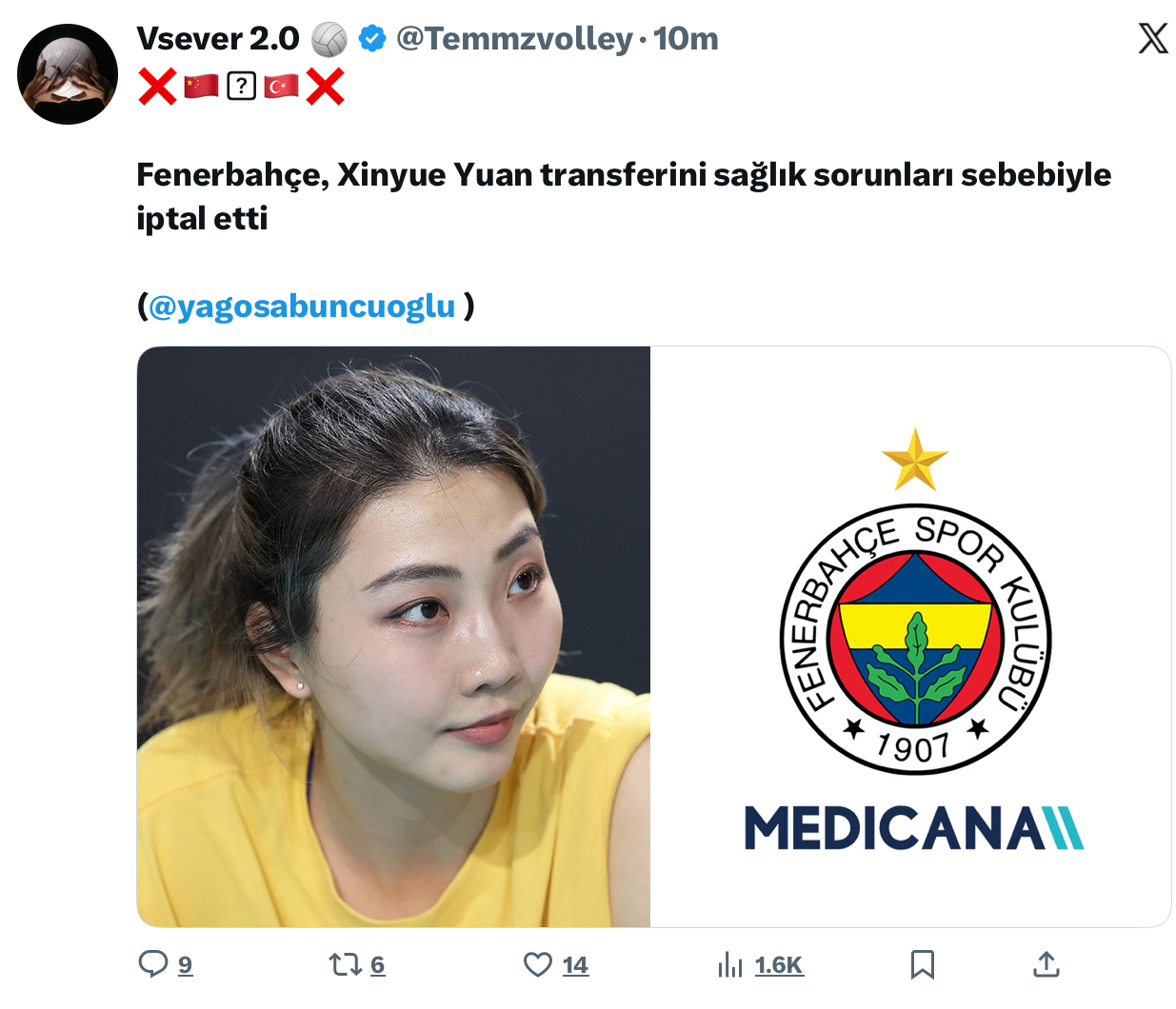 Fenerbahçe Medicana🇹🇷 ยกเลิกการดีลYuan Xinyue🇨🇳แล้ว แต่ดีลSinead Jack-Kisal🇹🇷🇹🇹จากไดนาวิทมาแทน