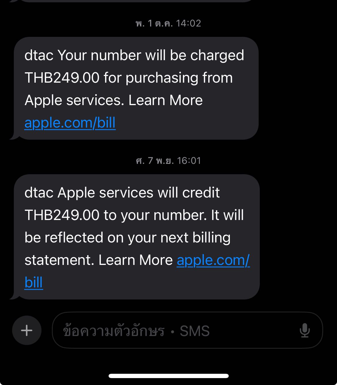 คือที่ผ่านมาอ่ะค่ะมีบริการแอปเปิ้ลมาหักเงินกับเราโดยหักรวมกับรายเดือนดีแทค แล้วเราพึ่งรู้ตัวตอนถึงรอบบิลเลยพึ่งเมลไปขอเงินคืนกับทางแอปเปิ้ล ทีนี้แอปเปิ้ลตอบรับเงินคืนมาแล้ว แต่ เป็นการคืนแบบหักยอดกับบิลถัดไปให้แทน แต่ตอนนี้ถึงรอบบิลอีกรอบแล้วก็ยังไม่มีการหักมาให้ ทำอย่างไรได้บ้างคะ