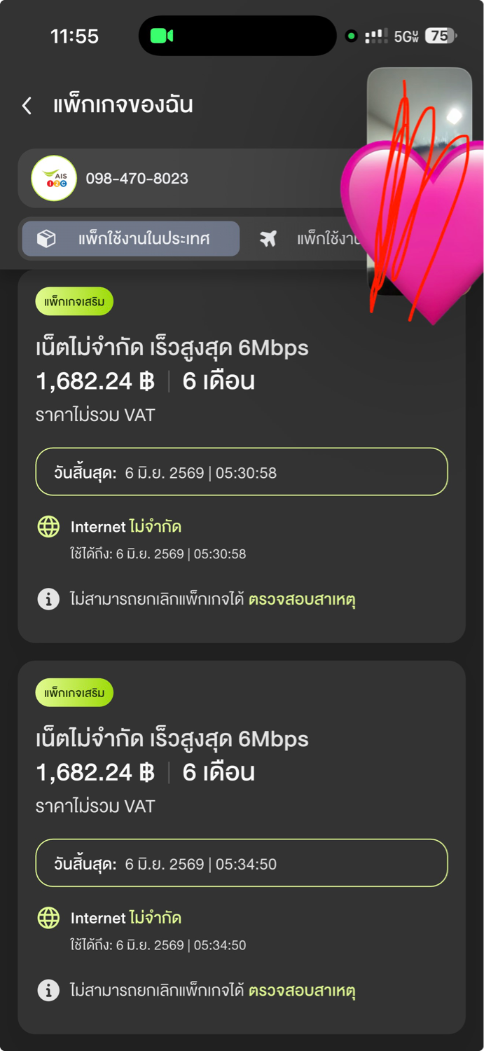 พอดีกดสมัครแพ็กเกจนี้ไปเมื่อวันศุกร์ที่แล้ว วันนี้ครบ7วันพอดี อยากสมัครซ้ำแต่กดหาในแอพ My Ais ไม่เจอ จะกดสมัครผ่านเบอร์ก็ไม่รู้จะต้องกดอะไร หรือมันไม่ใช่โปรถาวรที่มีตลอดคะ ㅠㅡㅠ