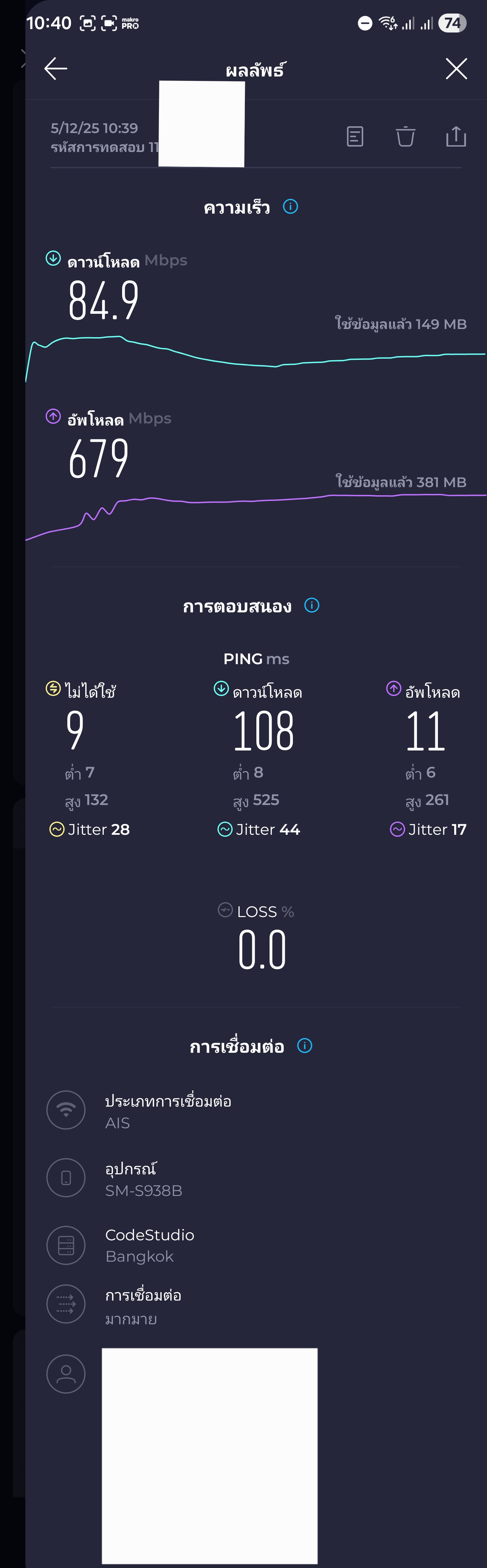 ทำไมเน็ตบ้าน AIS ของผมคือความเร็ว 500/500 ต้องรีเซ็ต 1-2 รอบต่ออาทิตย์ เพราะบางทีเล่นกันประมาณ 4-5 เครื่องพร้อมกันมันช้ามากๆแล้วทำให้ต้องทดสอบความเร็วความเร็วที่ได้ขนาดเล่นอยู่คนเดียววันนี้ ตอนที่ยังไม่ได้รีเซ็ตสัญญาณที่ my AIS app ความเร็วอยู่ที่ประมาณ 80/600 ความเร็วฝั่งอัพโหลดอ่ะปกติ แต่ฝั่งดาวน์โหลดก็คือไม่ถึง 100 ไม่เข้าใจว่าทำไมคนใช้งานจะต้องมานั่งเข้าแอพรีเซ็ตทุกอาทิตย์ และอีกอย่างหนึ่งเราเตอร์ตัวที่ 2 ที่ต่อสายแลนจากตัวที่ 1 ต้องมาถอดเสียบสายใหม่อยู่เรื่อยๆ ถ้าอุปกรณ์ของเราไปต่อกับ router ตัวที่ 2 ความเร็วก็จะอยู่ที่ประมาณไม่ถึง 100/100 พอมาถอดเสียบสายแลนที่ router ตัวที่ 1 แล้วกลับไปลองทดสอบความเร็วเราเตอร์ตัวที่ 2 ความเร็วก็จะกลับมาวิ่งเท่ากับ router ตัวที่ 1 ซึ่งเราเตอร์ตัวที่ 1 บางทีความเร็วดาวน์โหลดก็มาไม่ถึง 100 ต้องกลับไปรีเซ็ต