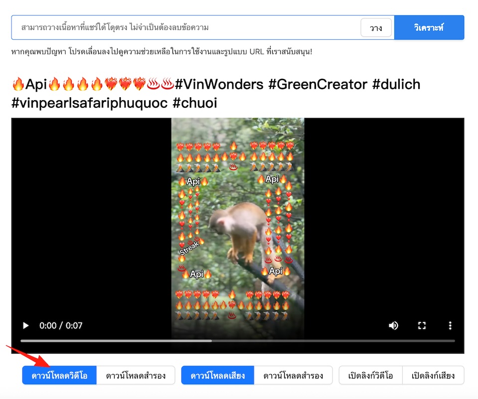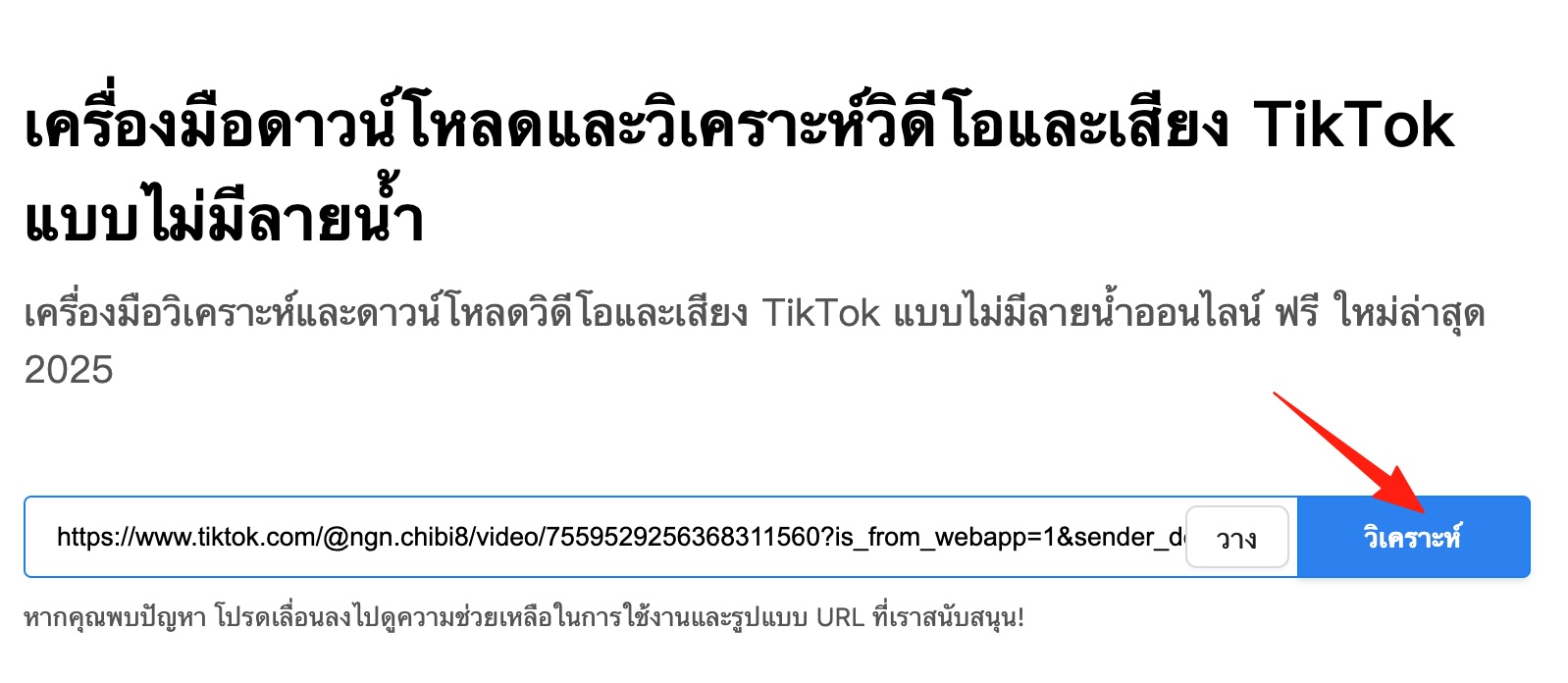 วางลิงก์ที่คัดลอกลงในช่อง แล้วกดปุ่ม