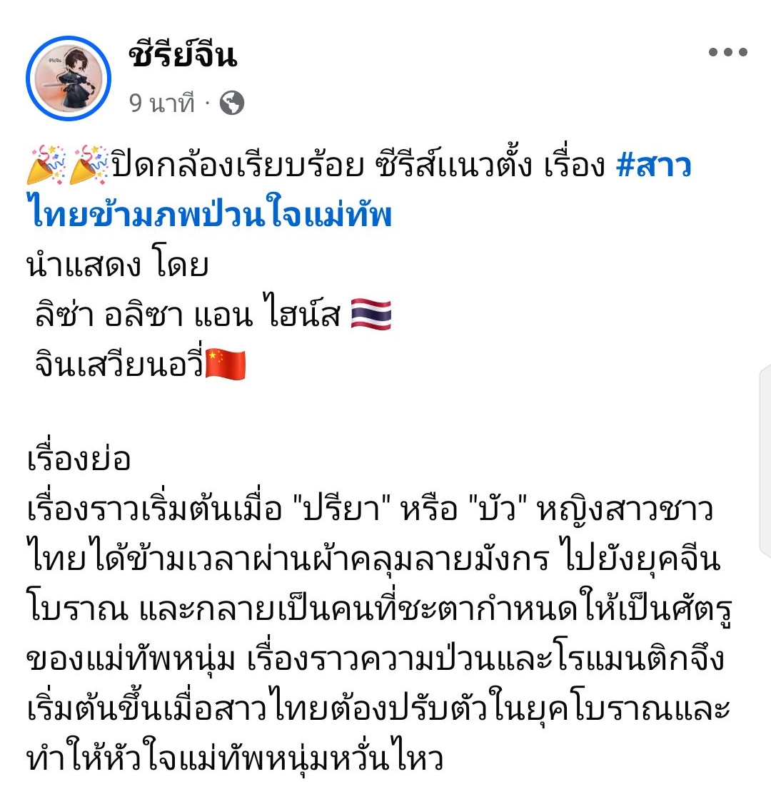 โปรเจคมินิซีรี่ย์ #ไทยจีน เรื่อง #泰妹穿越了将军心乱了 หัวใจสาวไทยปั่นป่วนหลังการเดินทางข้ามเวลา เรื่องราวความรักสุดโรแมนติกที่เดินทางข้ามเวลาสาวไทยทะลุมิติไปเจอแม่ทัพจีนหนุ่มสุดหล่อ นำแสดงโดย นางเอก 🇹🇭 ลิซ่า