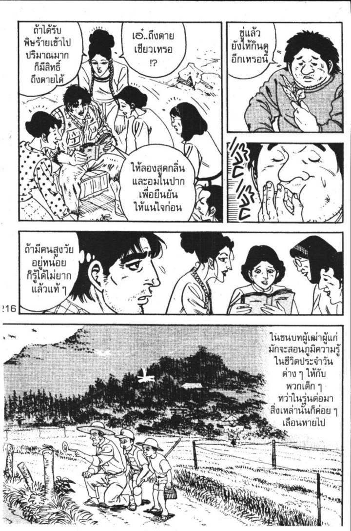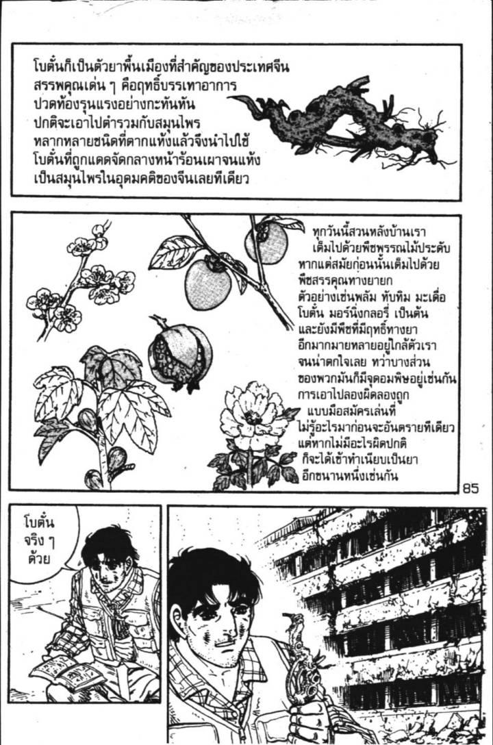 เนื้อเรื่องจะมีการจิกกัดสังคมปัจจุบันตลอดนะ(ปัจจุบันของสมัยที่เขียนนะ)ว่าคนเมืองส่วนใหญ่ ขาดความรู้พื้นฐานในการเอาตัวรอด พึ่งพาแต่ยาปัจจุบัน หาสมุนไพรหยิบเก็บกินแบบสมัยก่อนกันไม่เป็นแล้ว