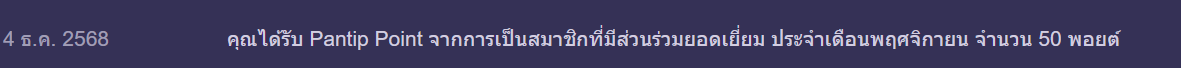 ได้รับคะแนน Pantip Vibe Star Point จากการเป็นสมาชิกที่มีส่วนร่วมยอดเยี่ยม เดือน ต.ค แล้วครับ ขอบคุณ Pantip ครับ