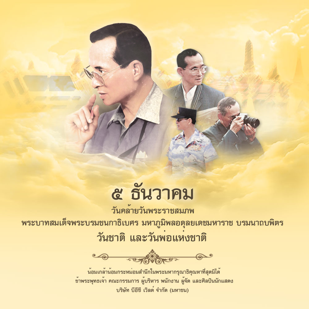 🙏 ตลอดระยะเวลา ๗๐ ปี แห่งรัชสมัย พระบาทสมเด็จพระบรมชนกาธิเบศร มหาภูมิพลอดุลยเดชมหาราช บรมนาถบพิตร รัชกาลที่ ๙ ทรงปฏิบัติพระราชกรณียกิจน้อยใหญ่นานัปการ เพื่อบำบัดทุกข์บำรุงสุขแก่อาณาประชาราษฎร์มาโดยตลอด โดยเฉพาะทรงจัดตั้งโครงการอันเนื่องมาจากพระราชดำริ ที่มีมากกว่า ๔,๐๐๐ โครงการขึ้นทั่วประเทศ เพื่อยกระดับคุณภาพชีวิตของราษฎร ต่อมา พระบาทสมเด็จพระวชิรเกล้าเจ้าอยู่หัว รัชกาลที่ ๑๐ มีพระบรมราชโองการโปรดเกล้าโปรดกระหม่อมให้กำหนด “วันสำคัญของชาติไทย” วันที่ ๕ ธันวาคม ของทุกปี เป็น “วันคล้ายวันพระบรมราชสมภพของพระบาทสมเด็จพระบรมชนกาธิเบศร มหาภูมิพลอดุลยเดชมหาราช บรมนาถบพิตร วันชาติ และวันพ่อแห่งชาติ” เพื่อน้อมสำนึกในพระมหากรุณาธิคุณอันหาที่สุดมิได้ของในหลวง รัชกาลที่ ๙