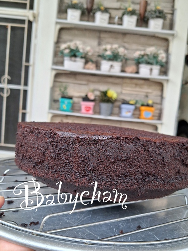 ตัวเค้กเป็นเนื้อช็อคโกแลต เอาออกจากเตาอบก็จับเขาคว่ำบนตะแกรงให้เขาเย็นลง แล้วก็สไลด์เป็น 3 ชั้นค่ะ ส่วนปูดๆแม่เปปก็จับไปวางเป็นฐานชั้นแรกซะ ไม่ได้ตัดออก โปะวิปครีมลงไปก็มองไม่เห็นแล้ว ทำเอง กินเอง ไม่มีใครกล้าบ่น 55