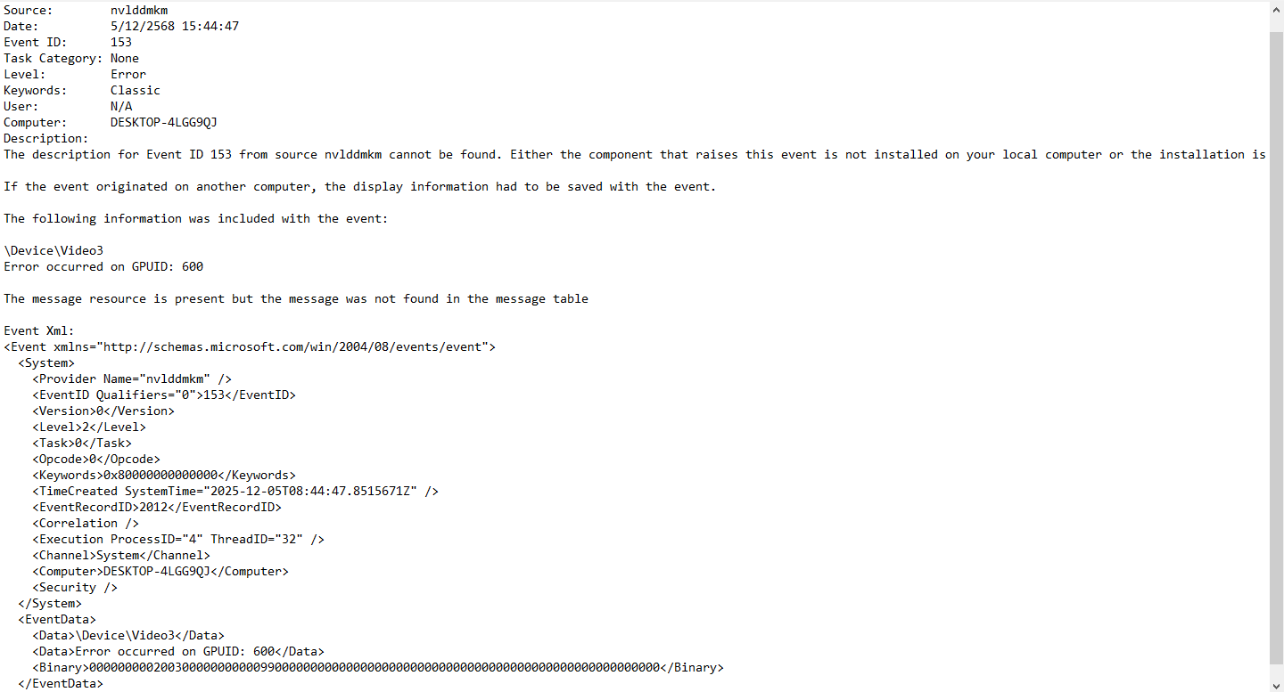 เล่นเกมแล้วหลุดพอมาเว็คที่ Event Propertis ขึ้น error id 153 กับ 4101