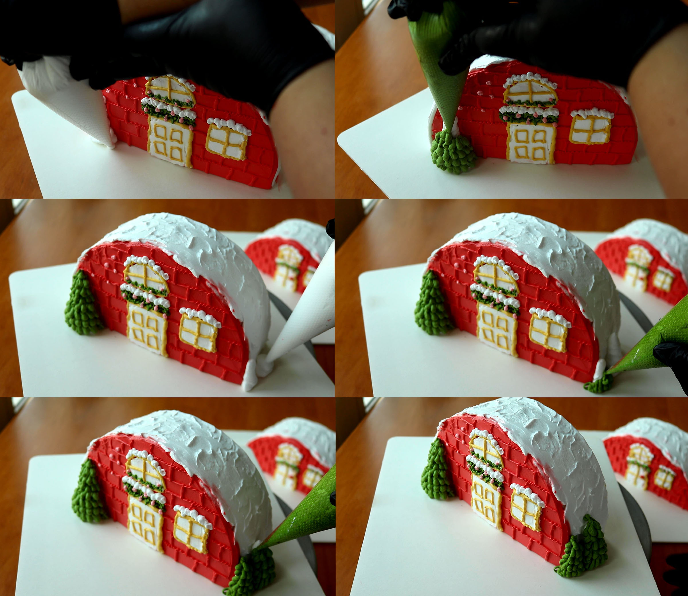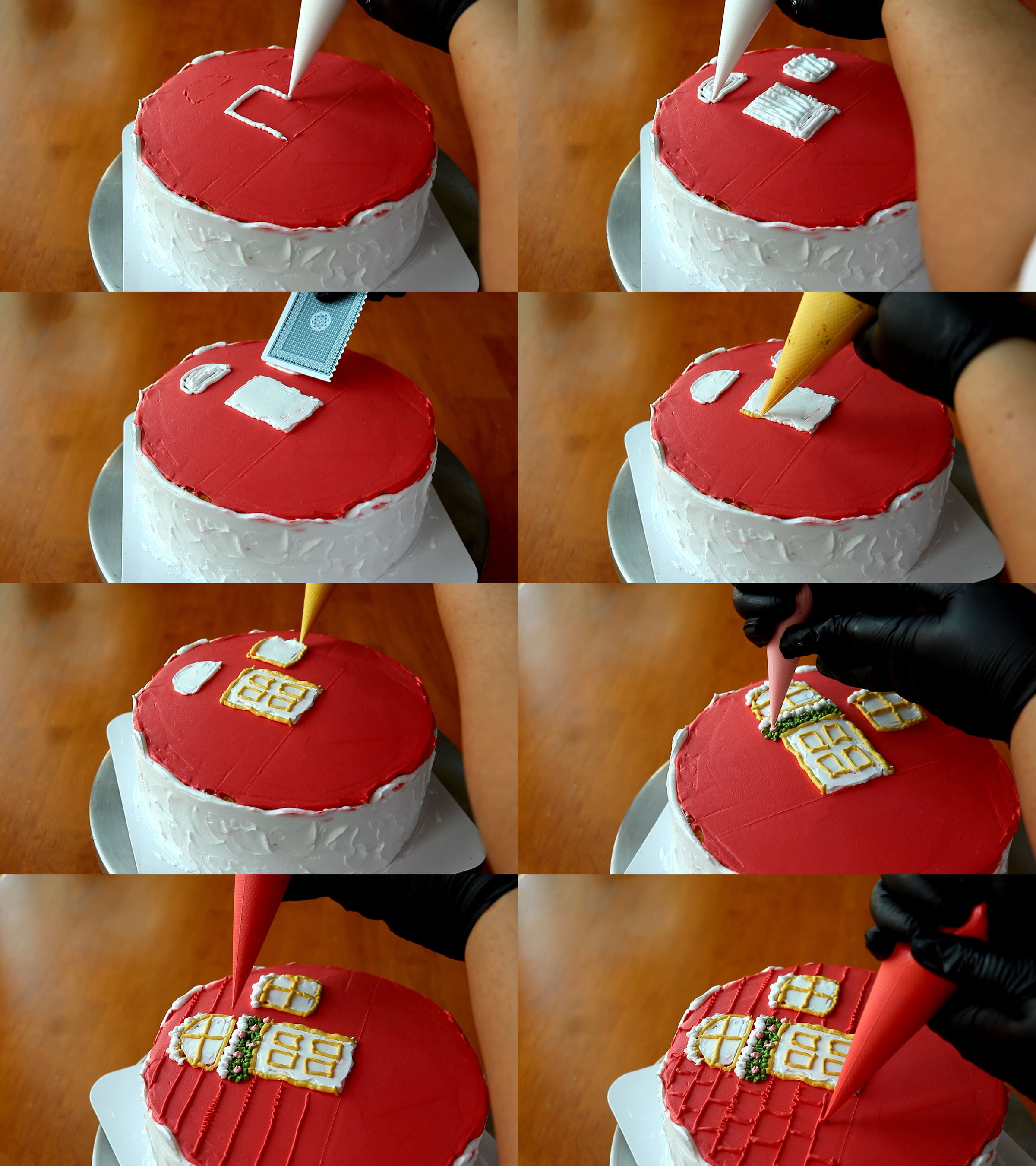 8.บีบครีมเป็นประตูหน้าต่าง และตกแต่งให้สวยงามตามจินตนาการได้เลยค่ะ